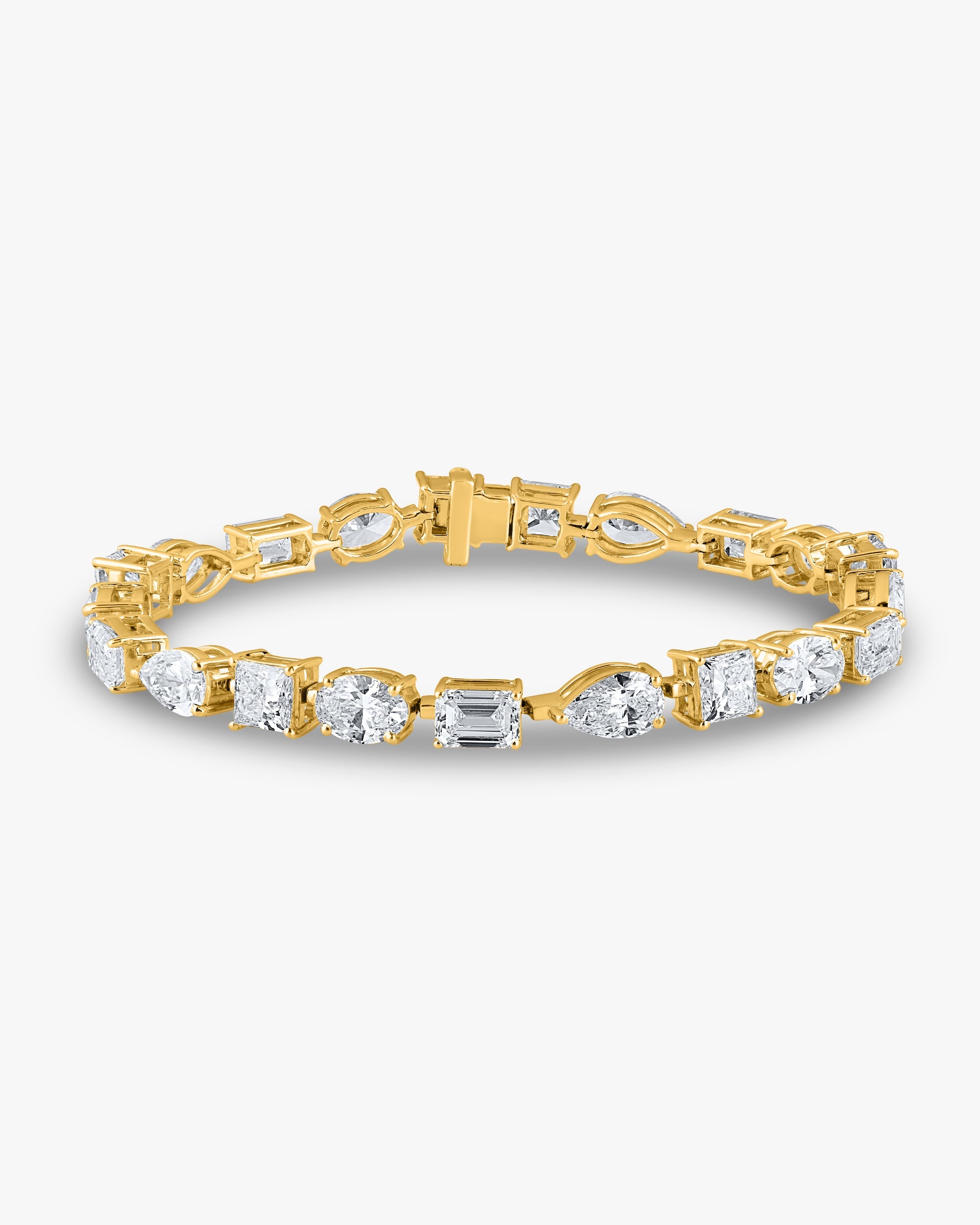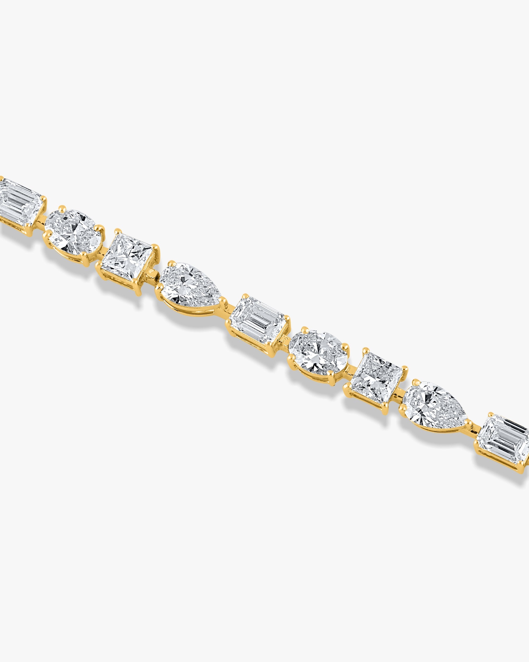 Total Diamond - 21 psc. Single Diamond Weight - 0.75 cts That fancy diamond bracelet with emerald, oval, pear, and princess diamonds absolutely exquisite! The combination of those different diamond cuts, along with the emerald, must create such a stunning and unique look. It's like a masterpiece of jewelry, showcasing a variety of shapes and colors that complement each other beautifully. What a glamorous and sophisticated piece to wear for any special occasion! 💎💚✨