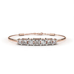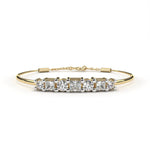 This luxurious bracelet showcases a bold and sophisticated design with a row of seven large, brilliantly cut diamonds set prominently at its center. Each diamond is securely held in place by prongs, maximizing their sparkle and brilliance.