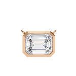 This elegant necklace features a prominent emerald-cut diamond or diamond-like gemstone set horizontally in a sleek bezel set,yall. The emerald cut, known for its long, clean lines and step-cut facets, adds a refined, architectural feel to the piece. The bezel setting not only enhances the geometric silhouette but also provides extra security and a smooth, modern look.