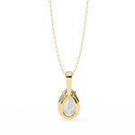 This necklace features a stunning pear-shaped diamond that exudes elegance and sophistication. The diamond, known for its brilliant sparkle and unique teardrop silhouette, is secured by a three-prong setting that allows light to enter from all angles, enhancing its natural brilliance.