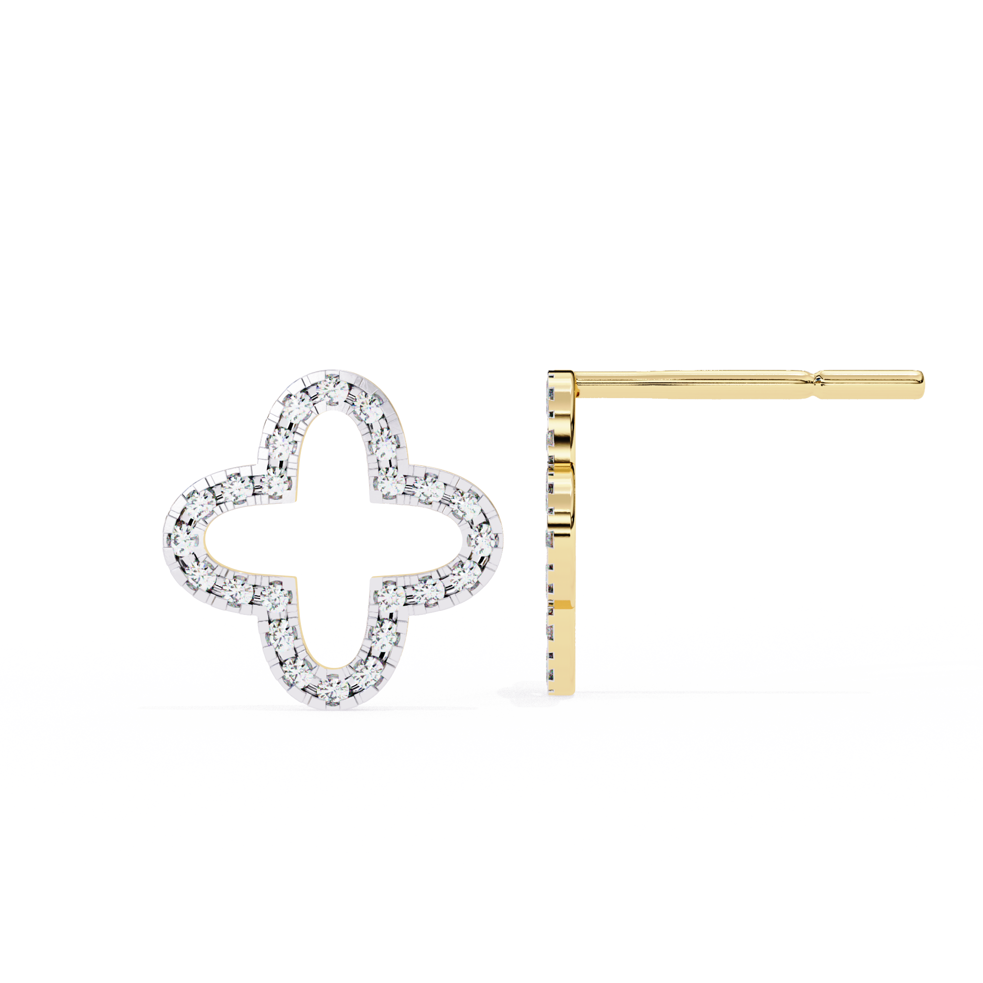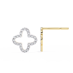 This earring features a refined and elegant design, characterized by a clover-shaped outline encrusted with sparkling white stones, likely diamonds, set in a white metal such as white gold or platinum. The clover, often symbolizing luck and harmony, is open in the center, lending the piece a modern and airy aesthetic.