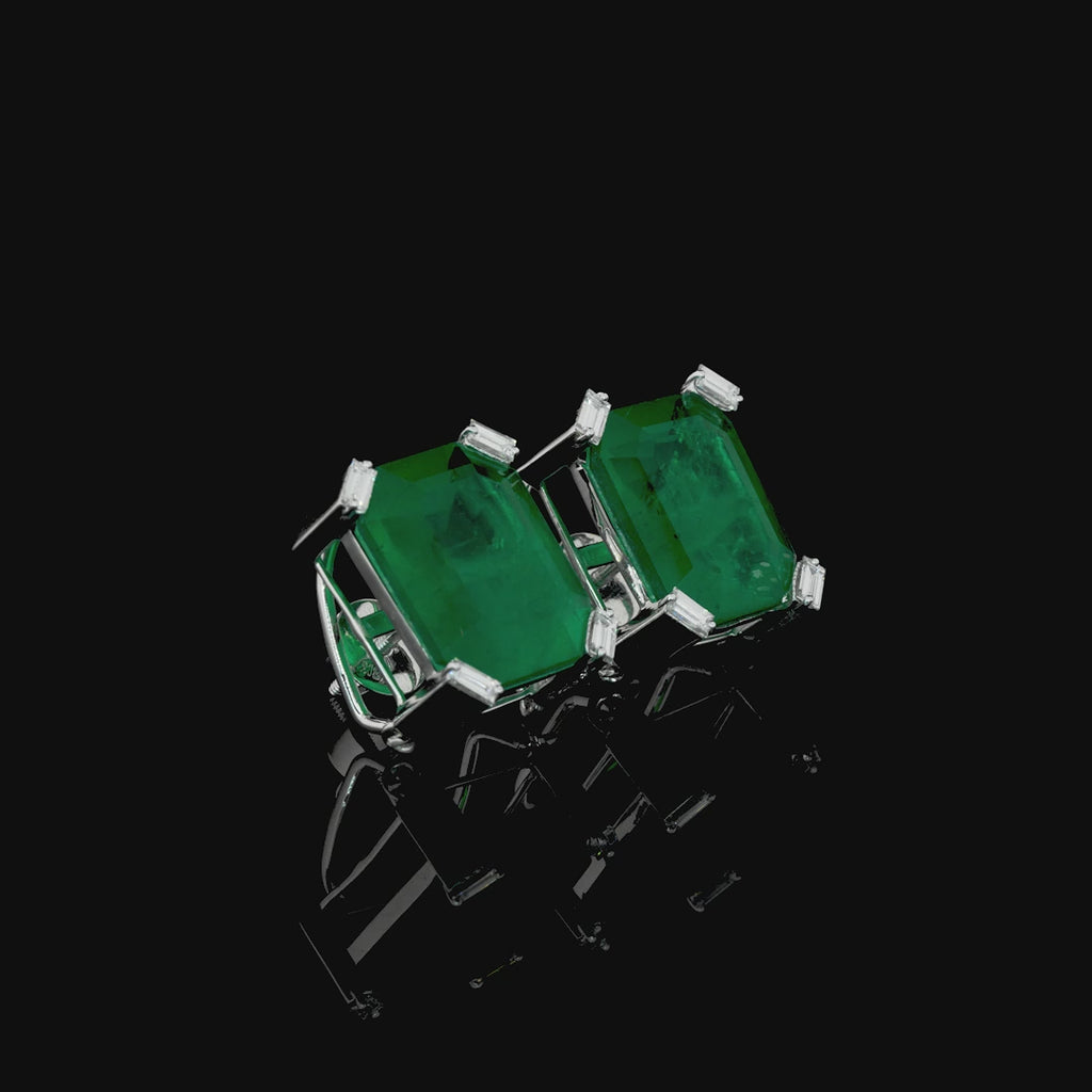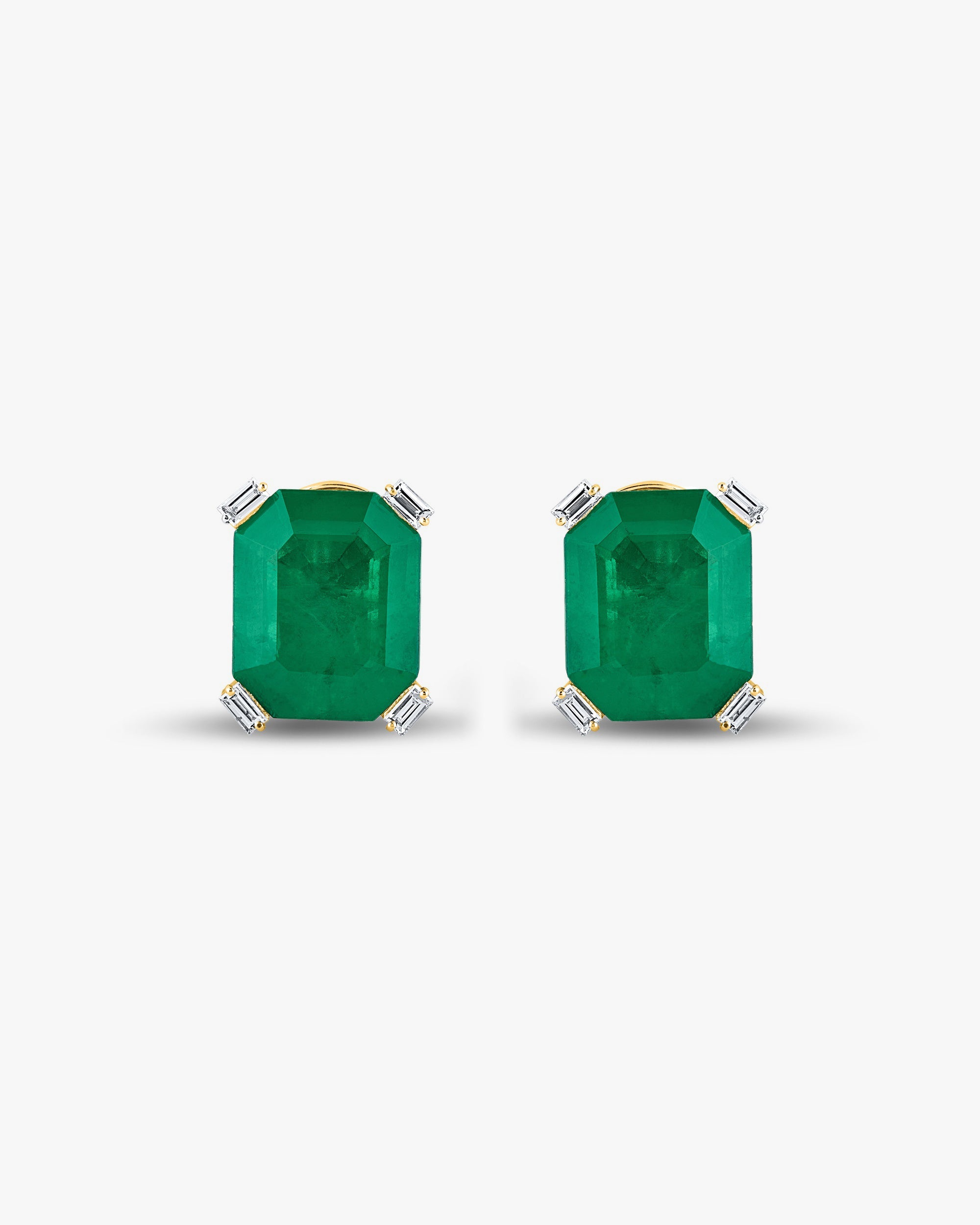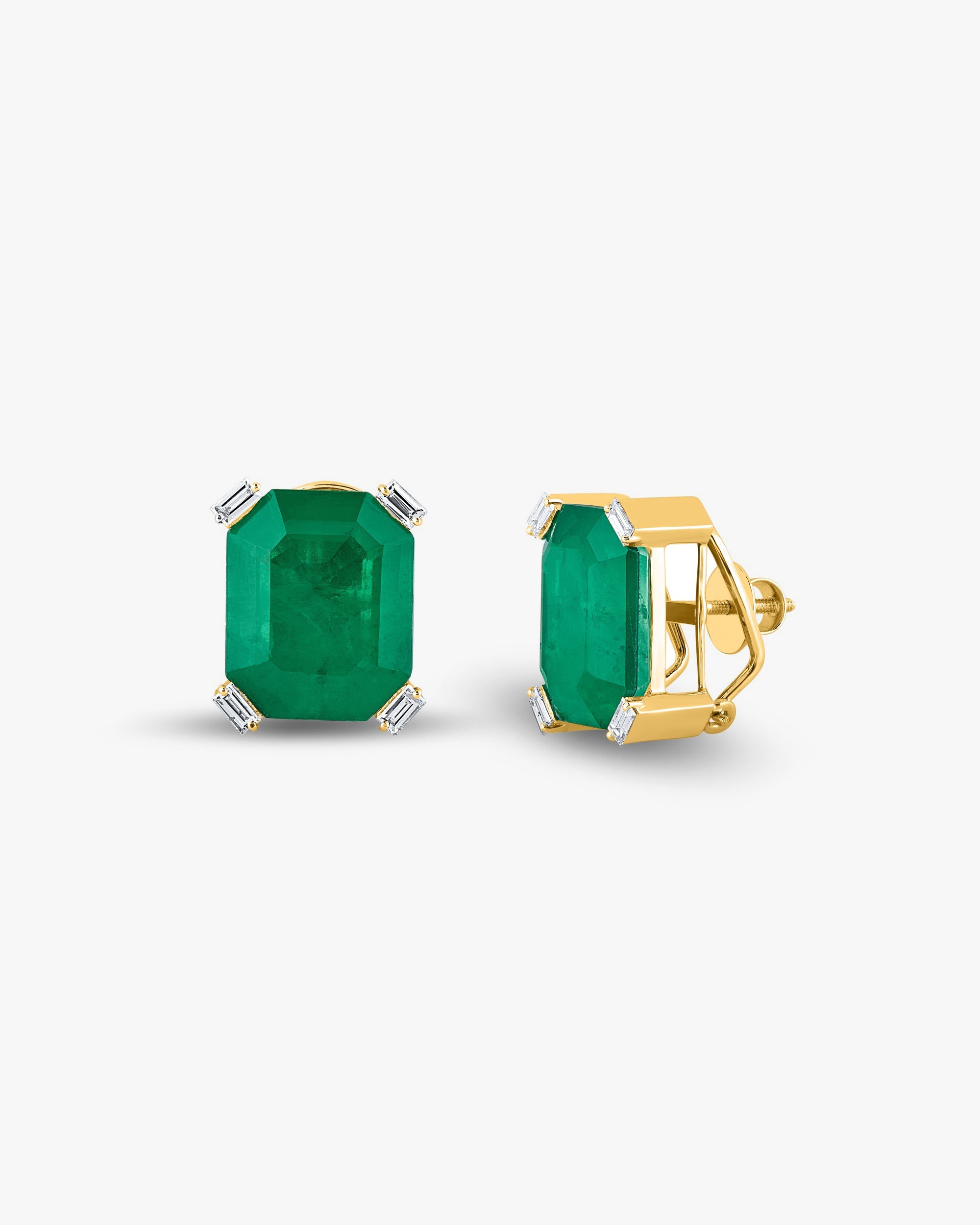 Stone Weight:-21.31 A striking solitaire stud featuring a bold emerald-cut green stone, secured with four elegant prongs. The rich color and clean cut make it a royal choice for both traditional and modern looks.