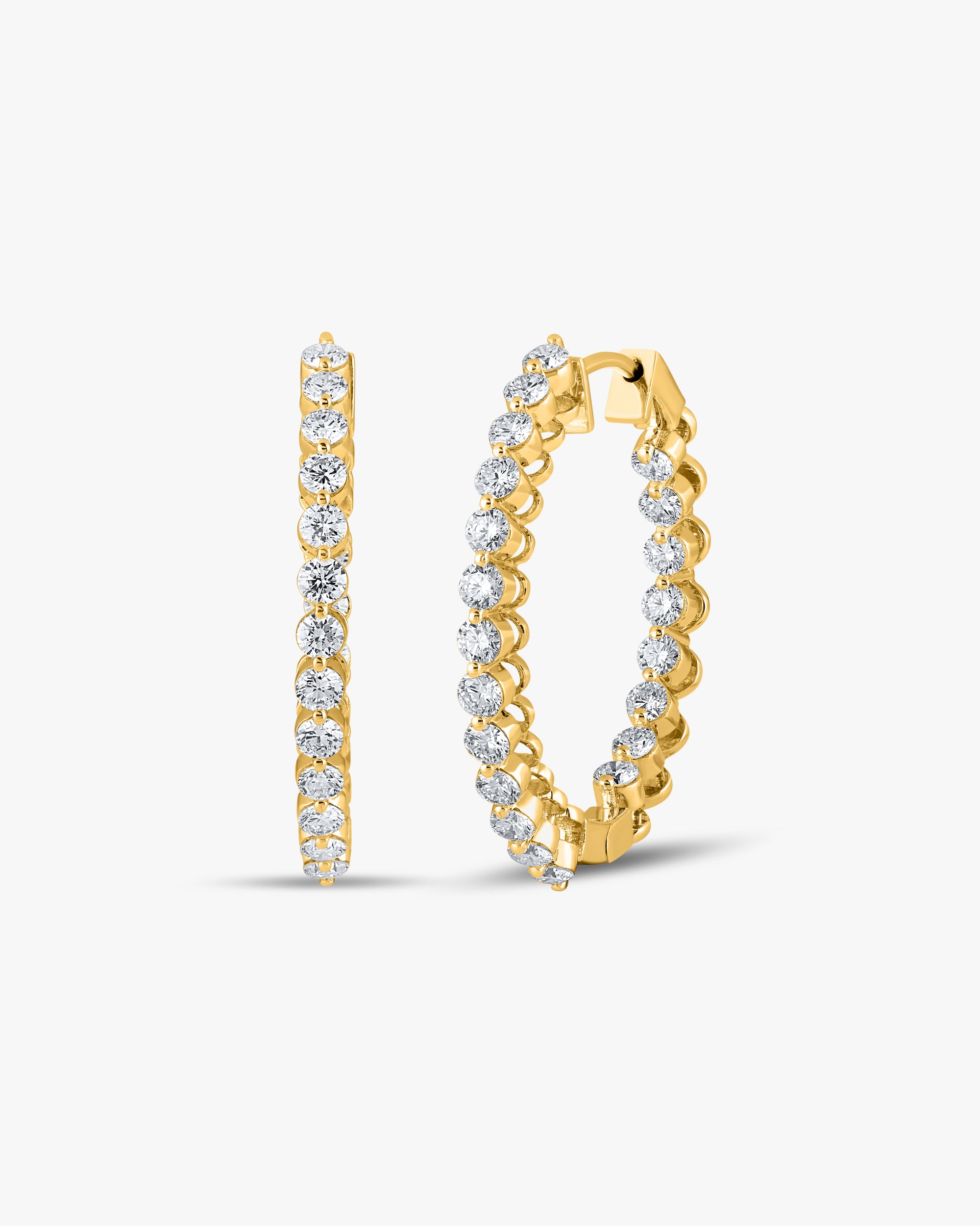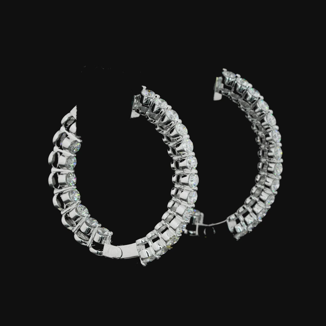 Inside out diamond hoops are earrings where the diamonds are set both on the outside and inside of the hoop, creating a dazzling sparkle from every angle. They're a stylish and glamorous choice for those who love a bit of extra bling in their accessories! 💎✨