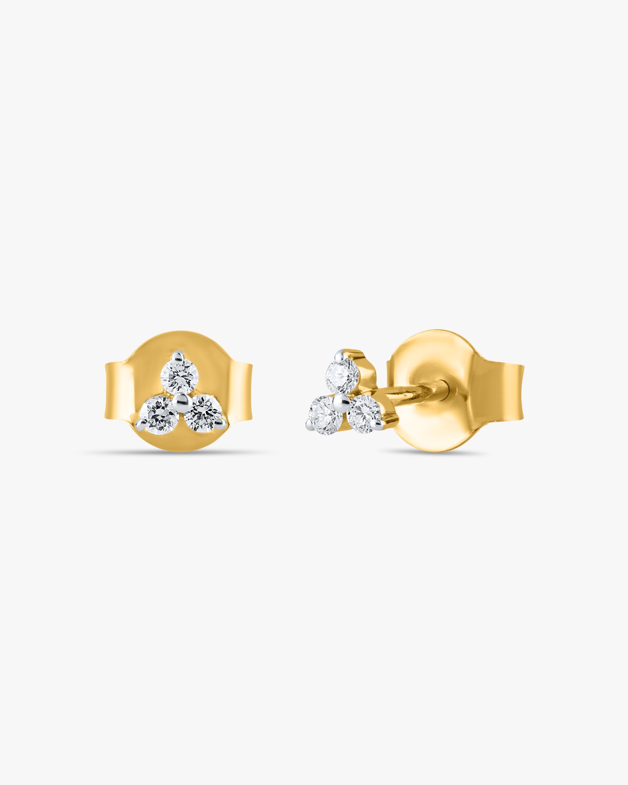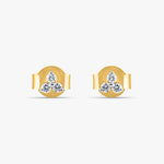 The delicate symmetry found in nature, the "Tranquil Bloom Studs" capture the serene essence of a blossoming clover or a cluster of morning dew. Each earring features three luminous gemstones, meticulously arranged to form a harmonious trifoliate design, reminiscent of a protective charm or a symbol of unity.