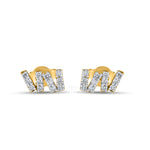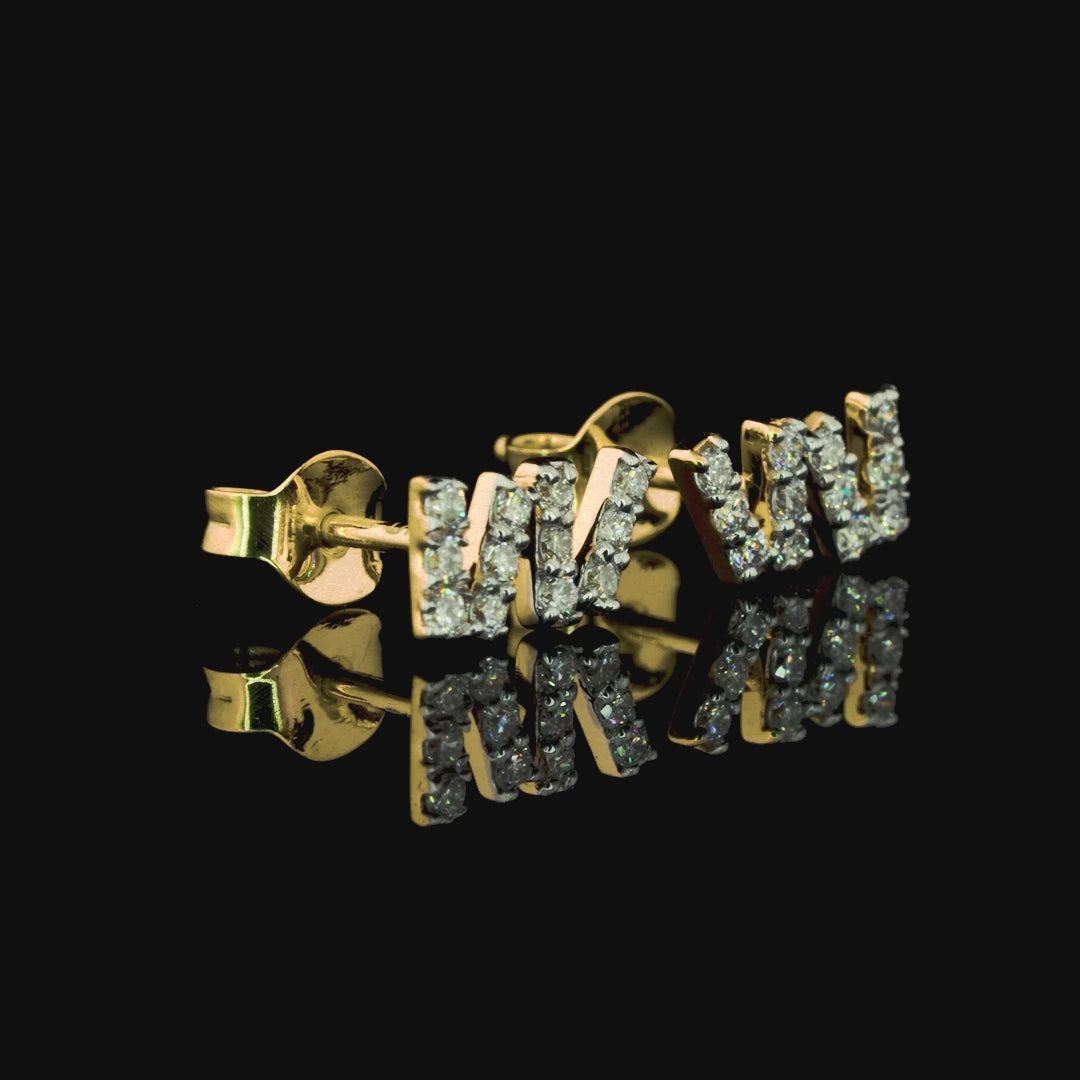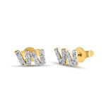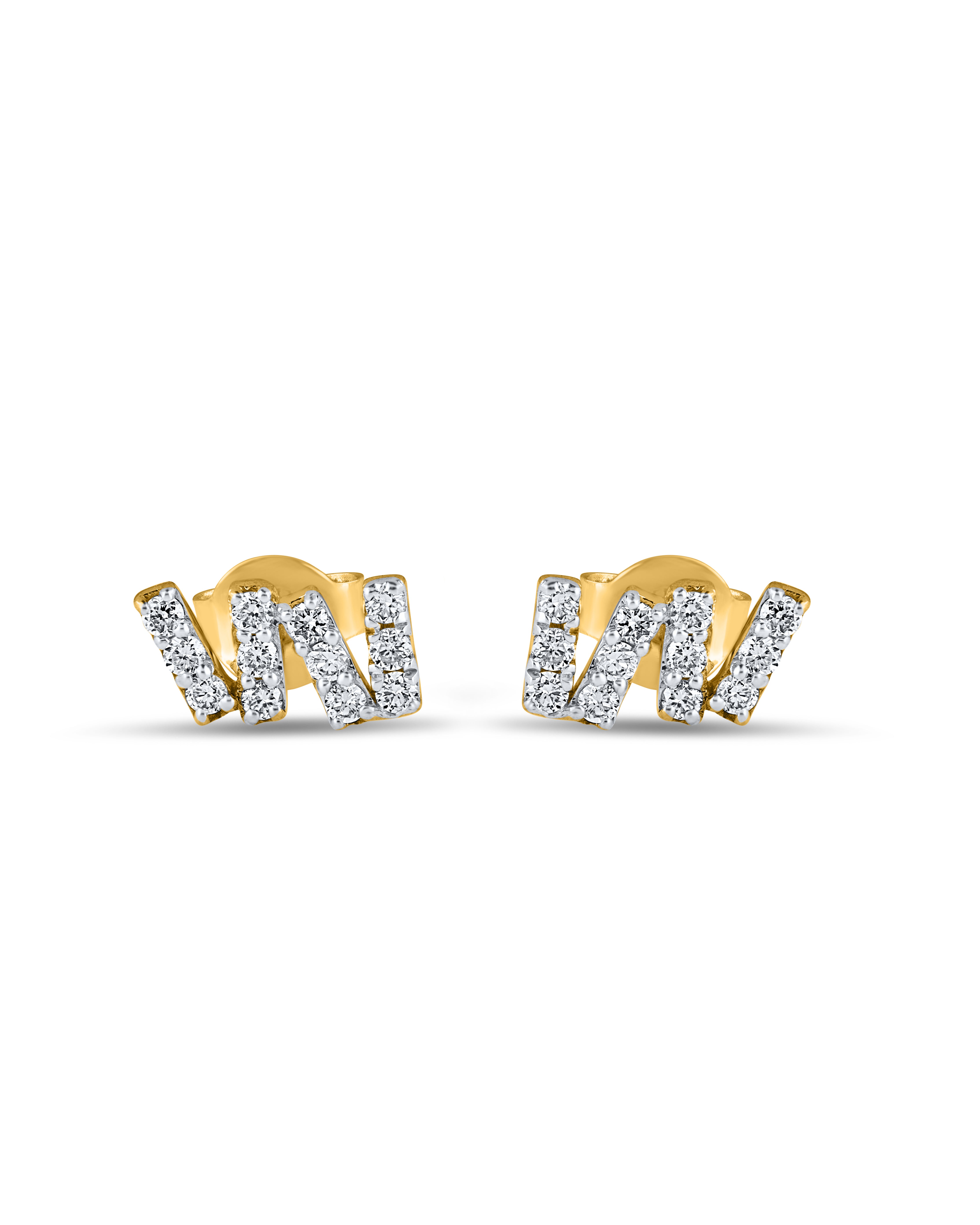 Modern zig-zag inspired 10K gold earrings with a bold geometric pattern on one side and delicate purple-blue floral accents on the other. A stylish fusion of edgy and elegant, perfect for standout looks.