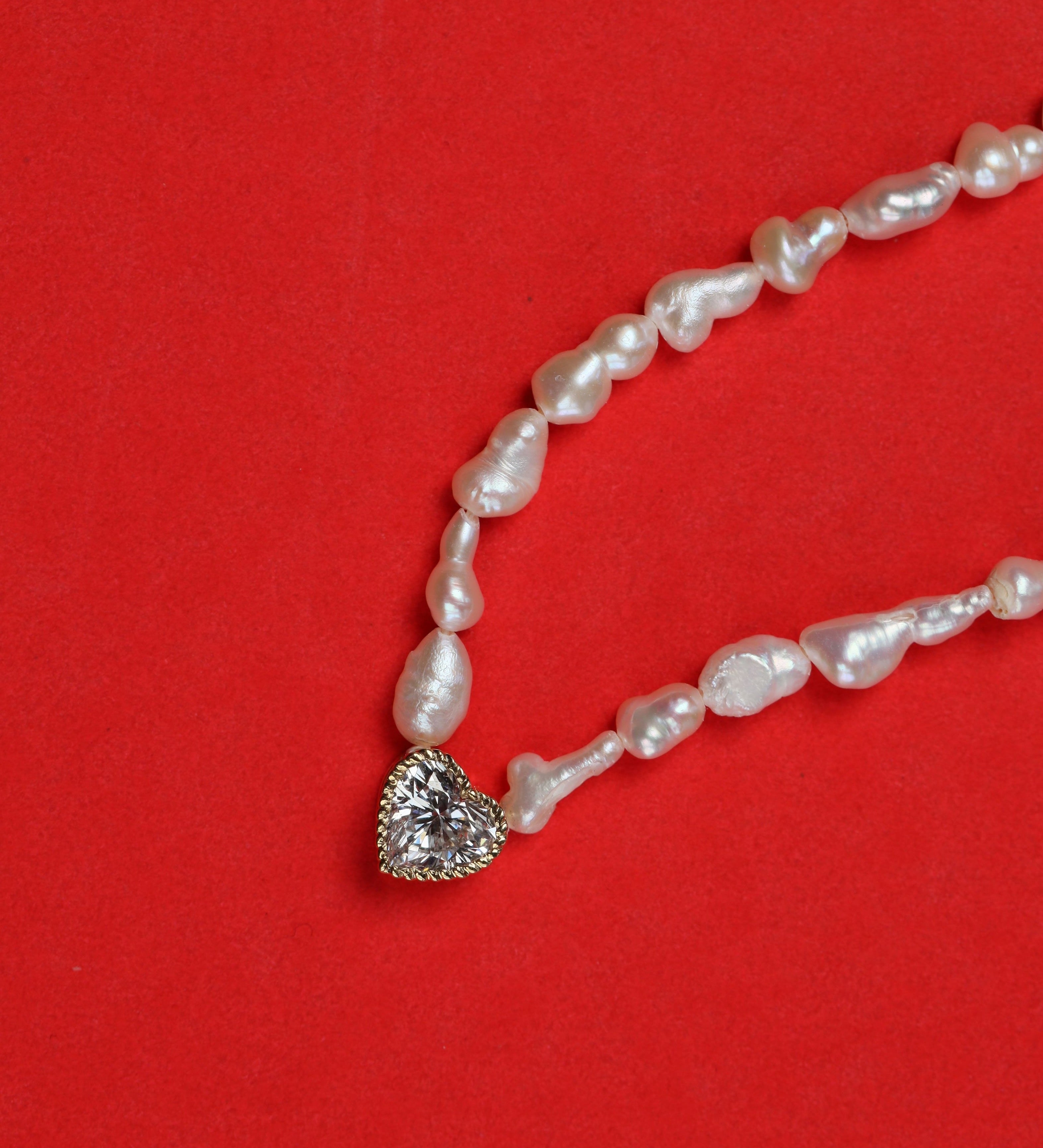 1.00 Ct Heart Diamond With White Pearl Necklace / Bracelet