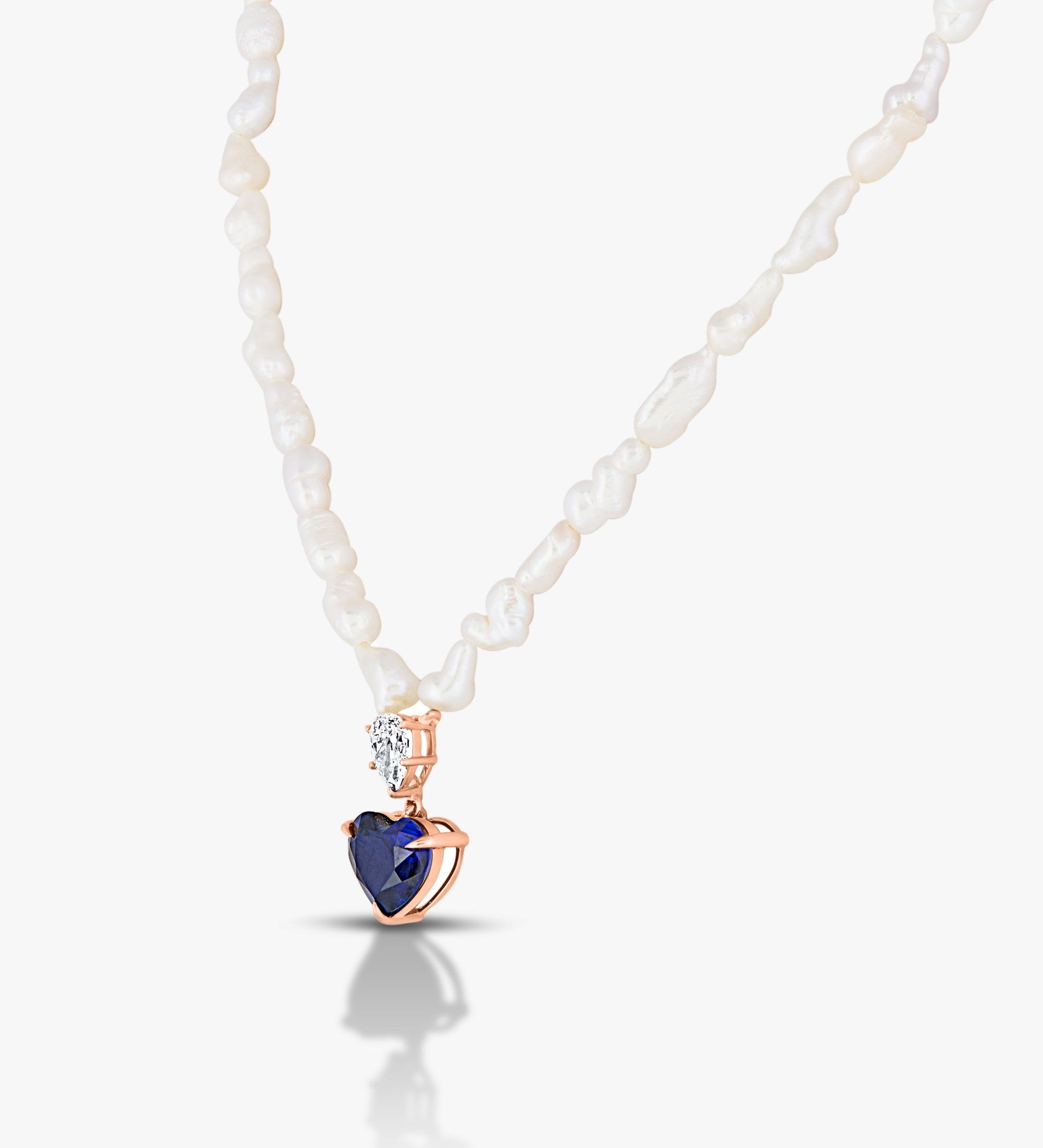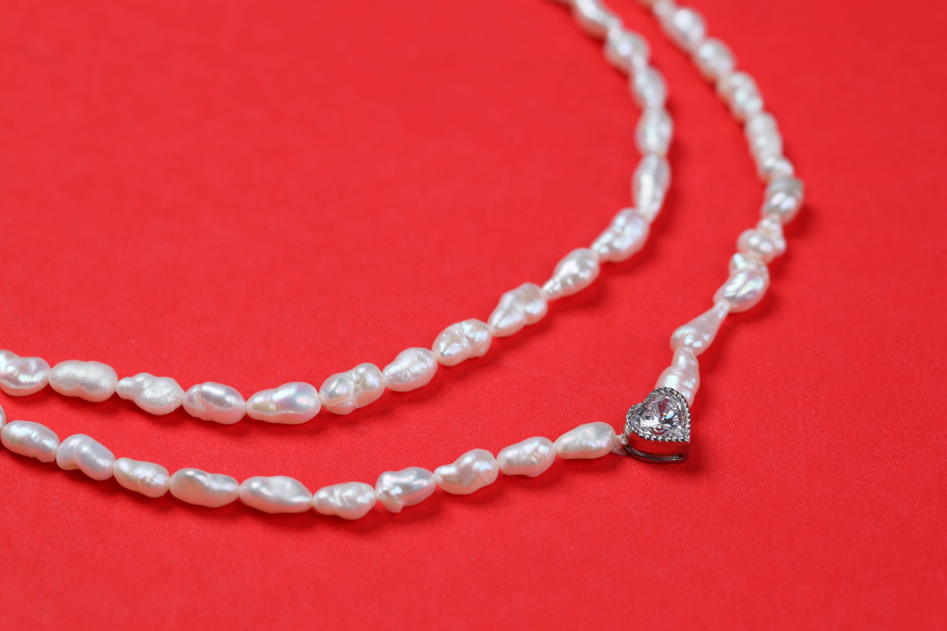 1 Ct Heart Long Pearl Line Necklace