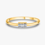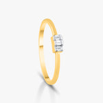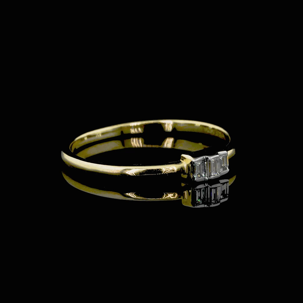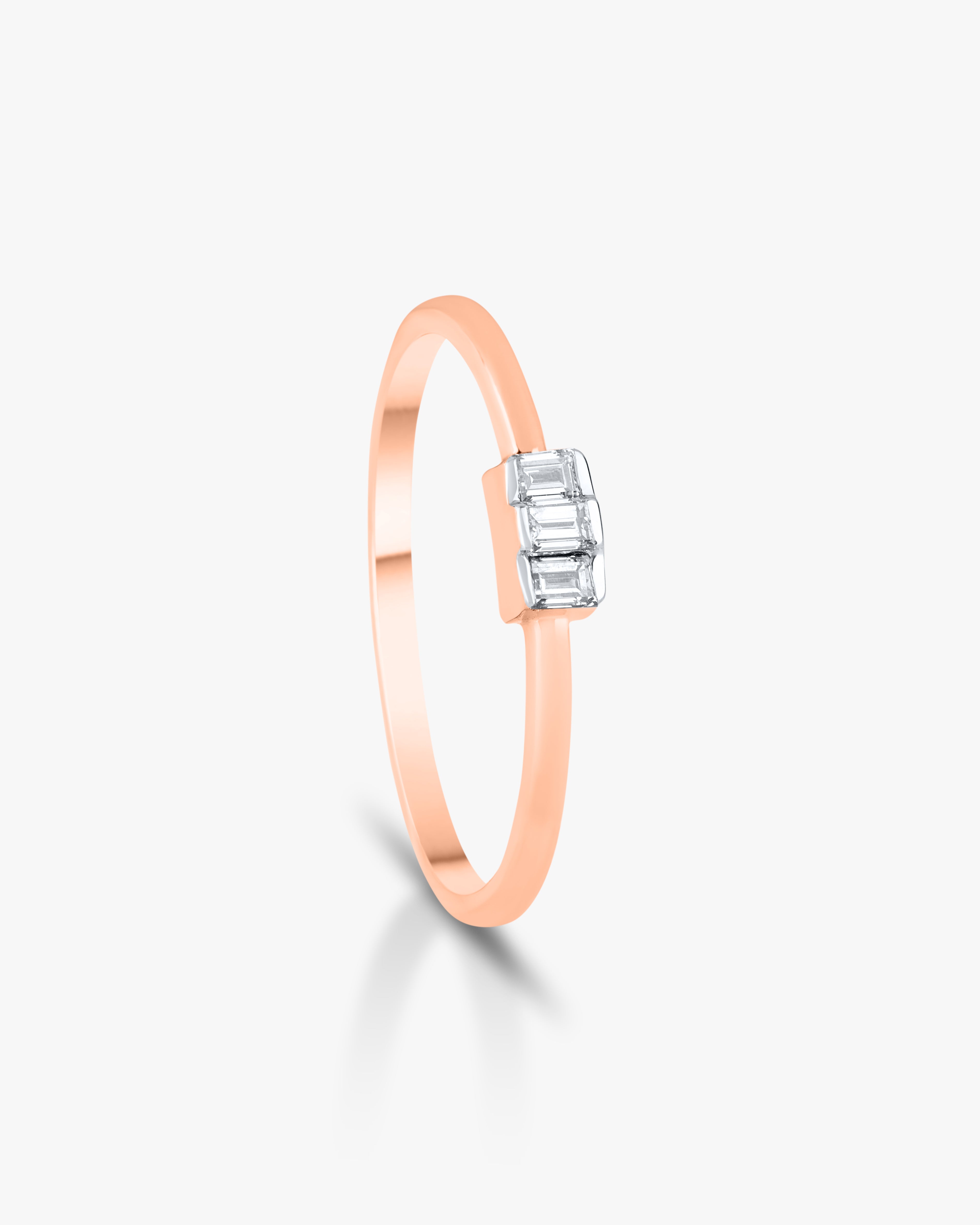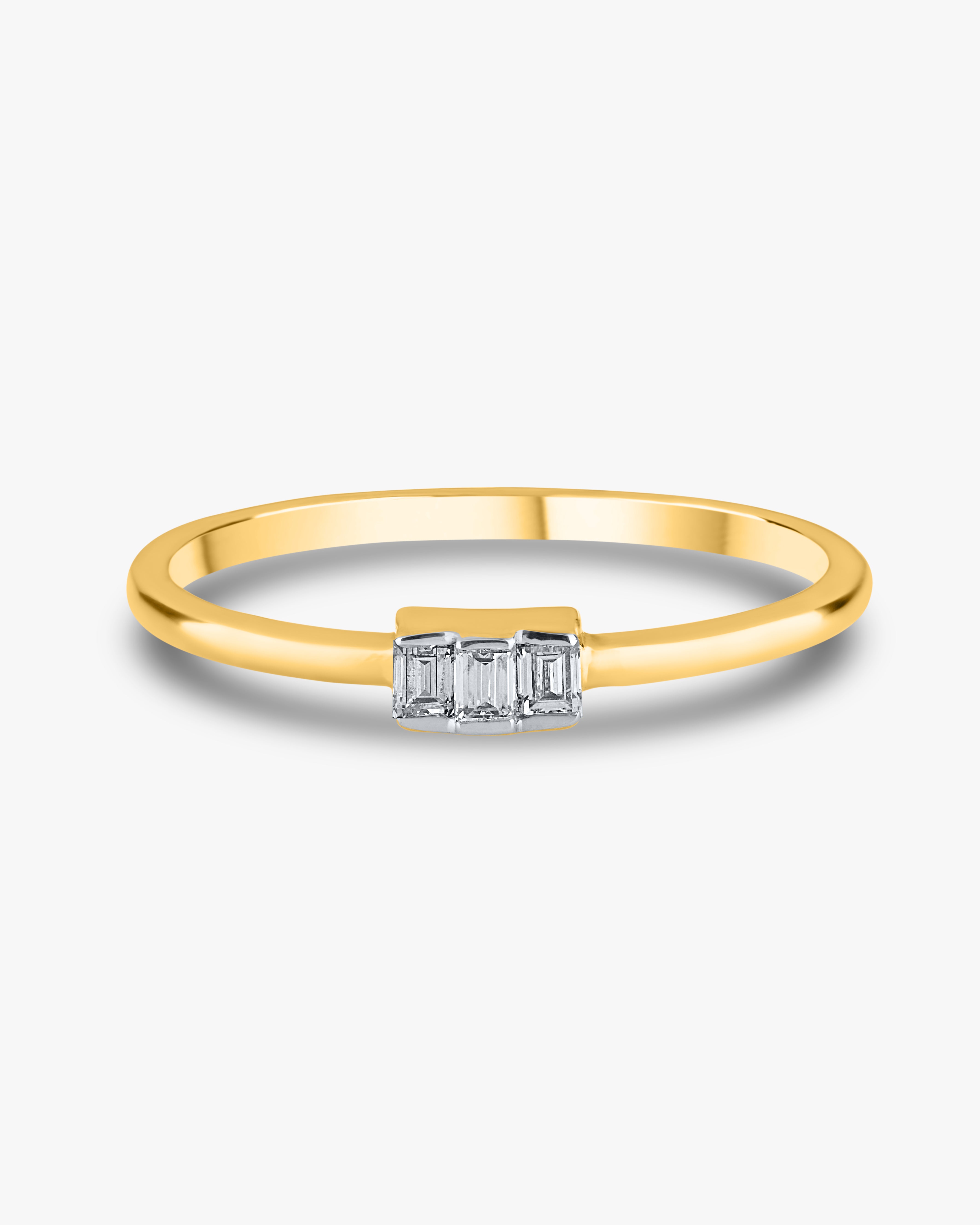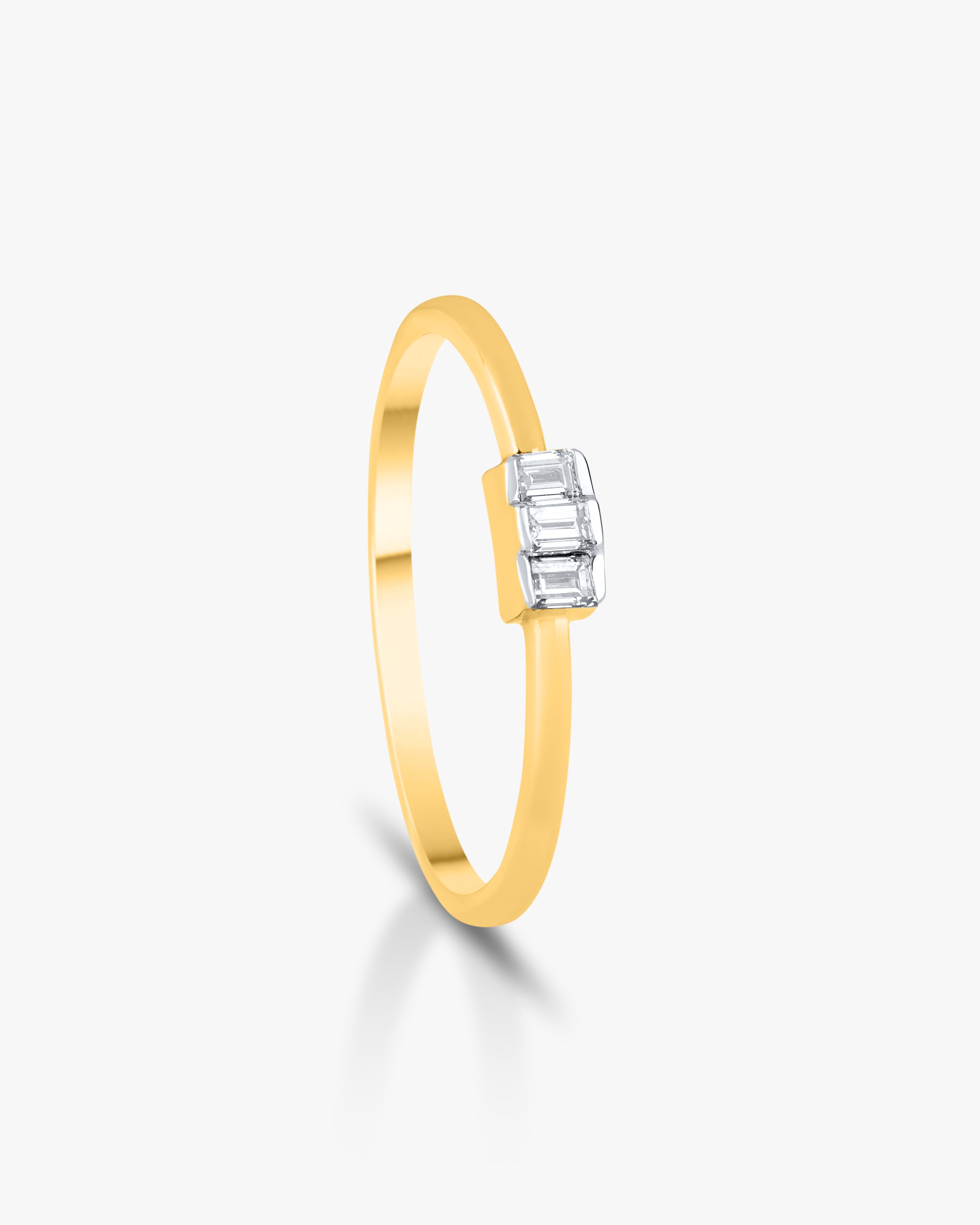 A modern gold ring featuring three baguette-cut diamonds set in a bold horizontal bar style. Its structured look gives it a sleek and contemporary feel. Perfect for daily wear with a touch of sophistication.