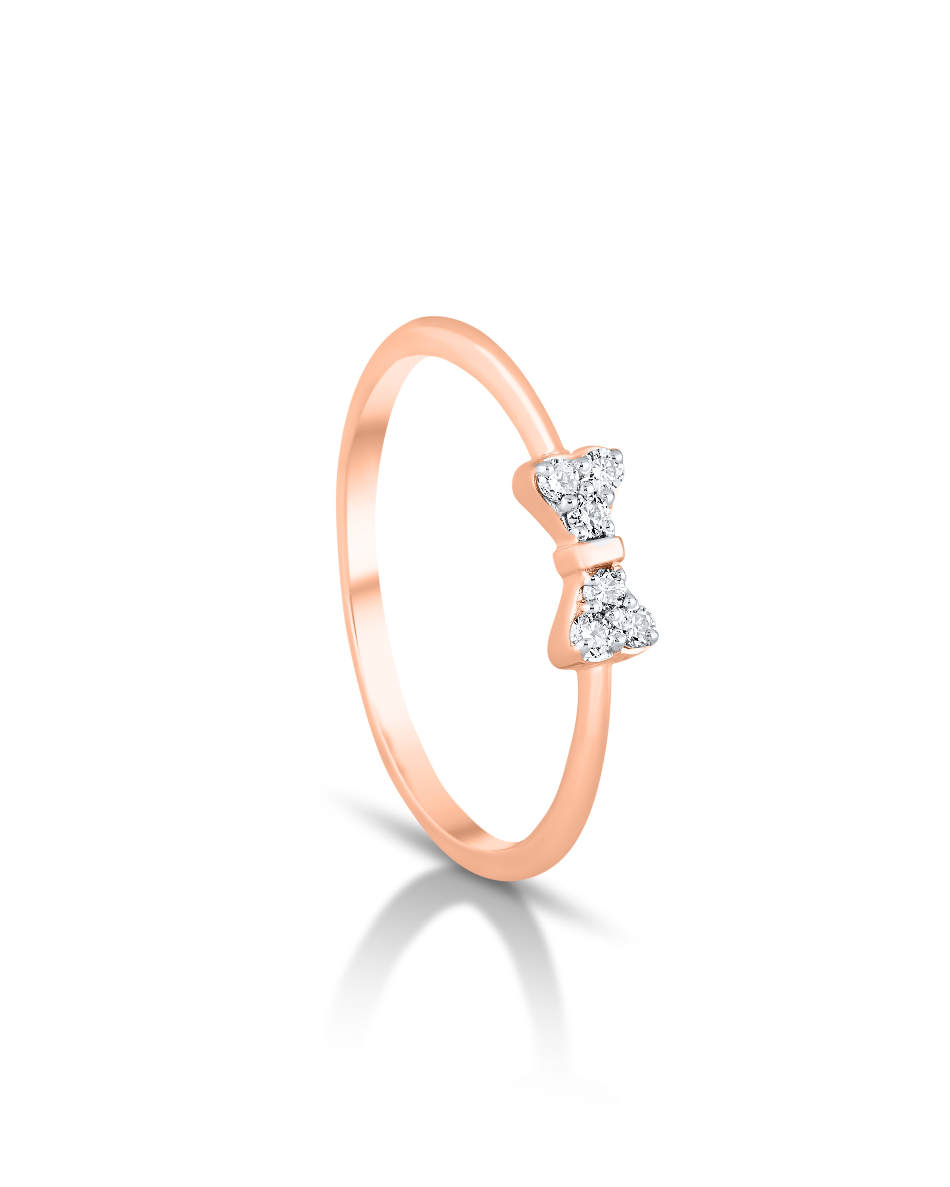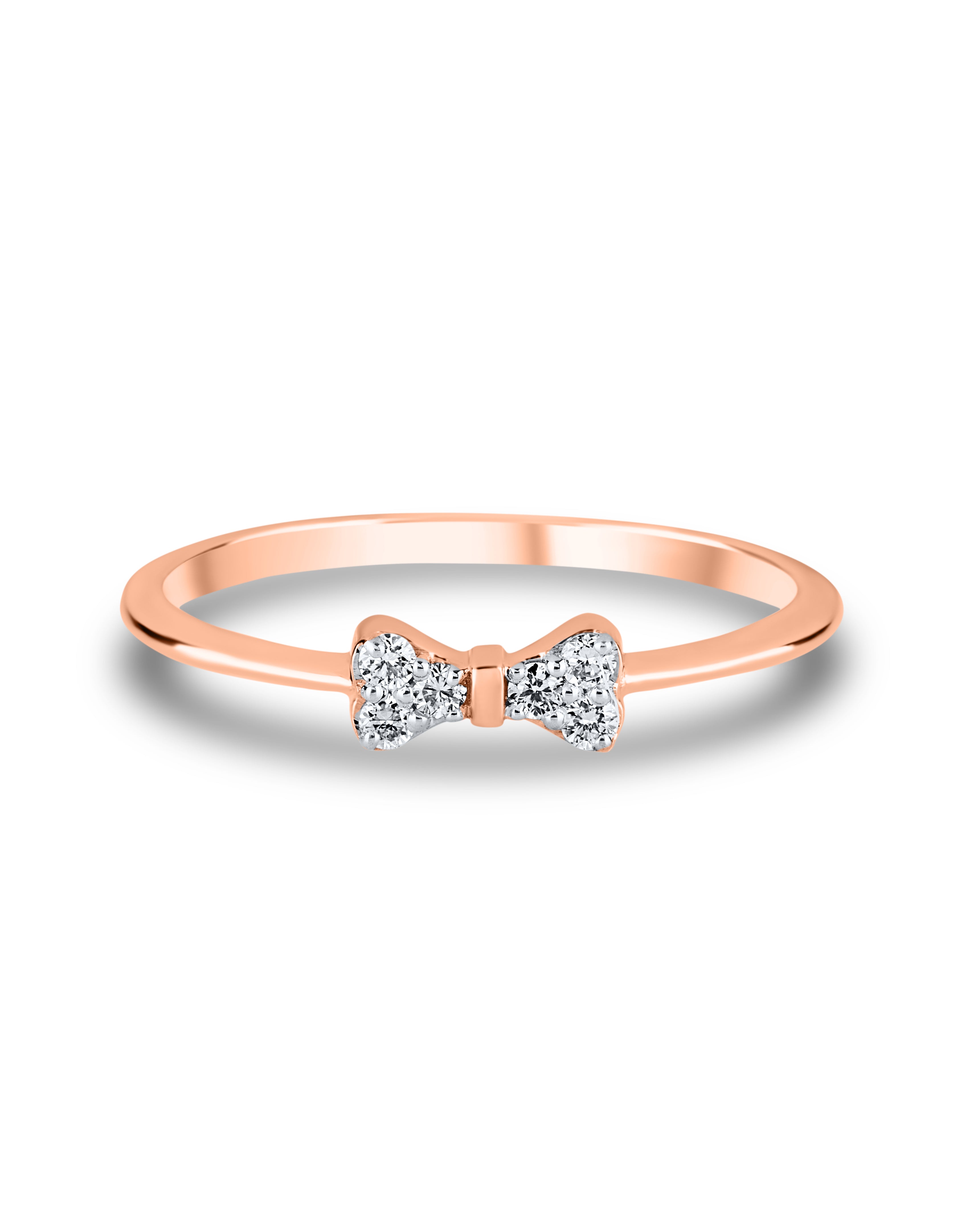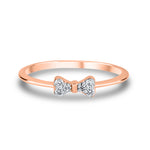 The "Dainty Bow" ring captures the essence of playful elegance in a minimalist design. Crafted in radiant rose gold, it features a charming bow motif accented with shimmering diamonds, symbolizing grace, femininity, and the joy of life’s little moments.