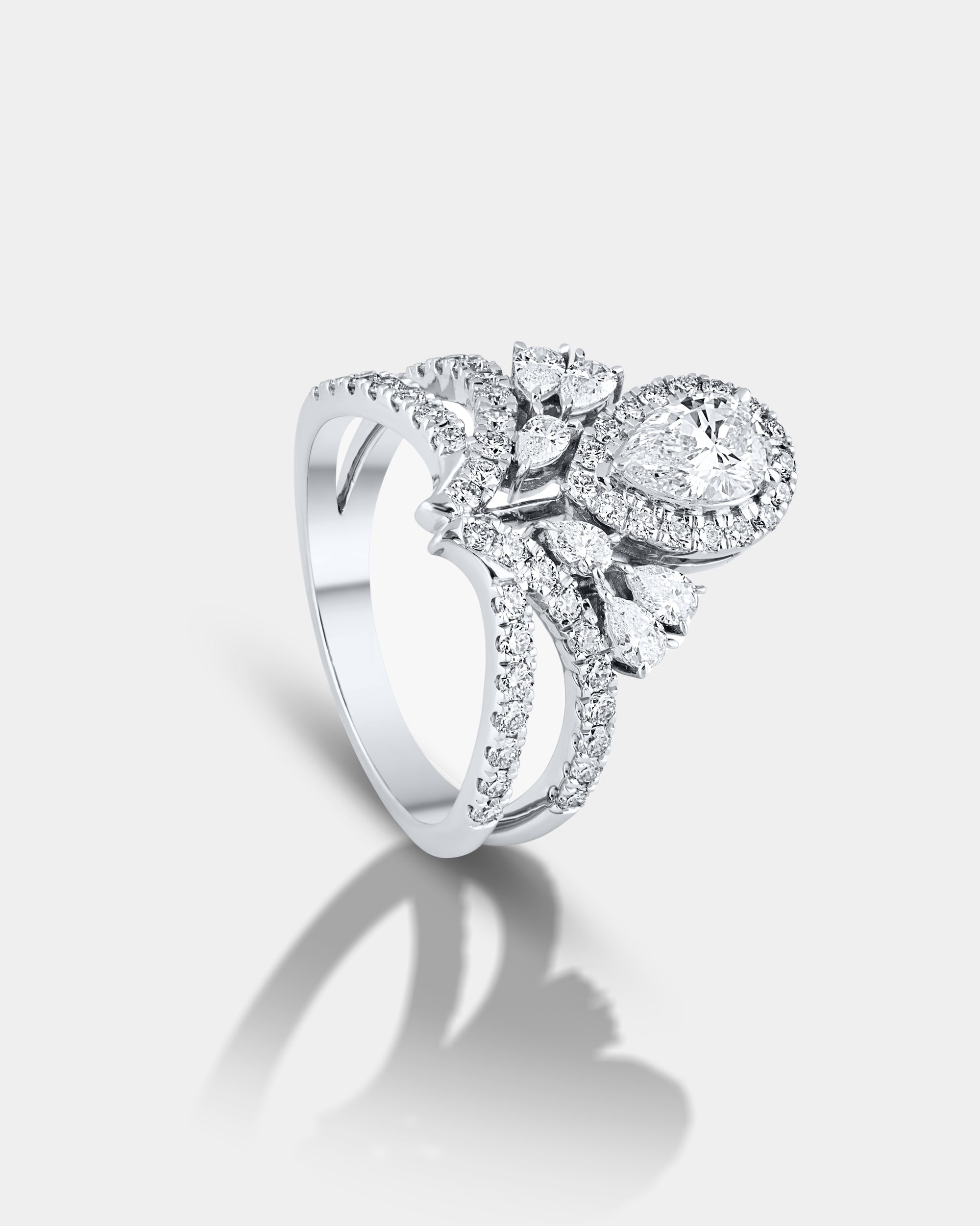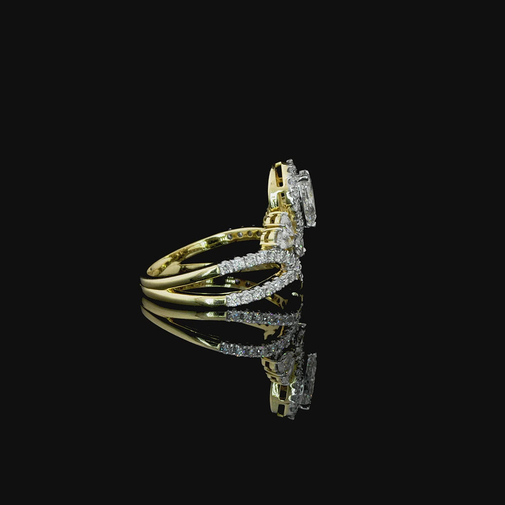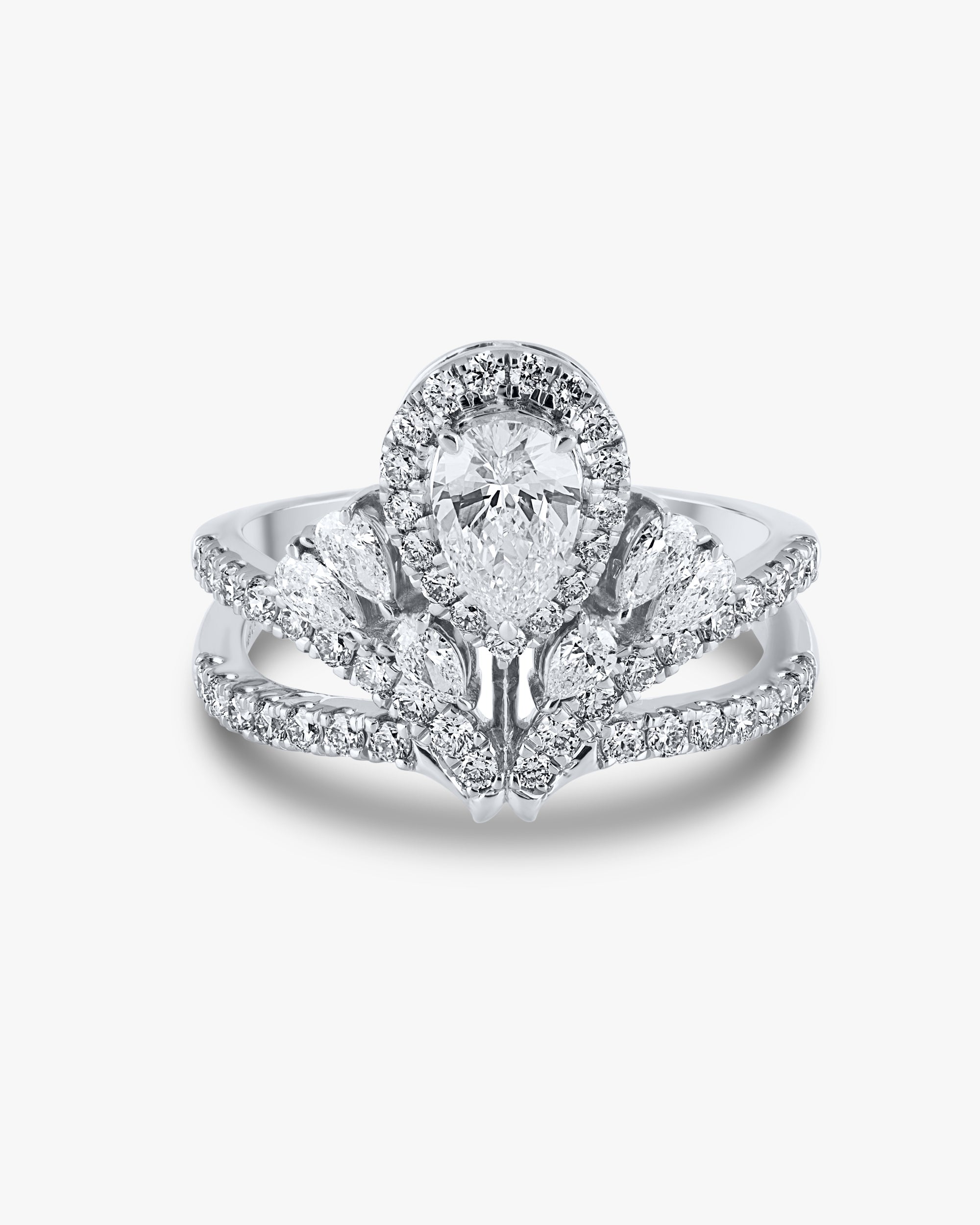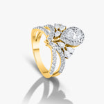 Centre Pear Diamond Wt. 0.54 And Surrounding Pear Diamond Wt. 0.32 / Round Diamond Wt. 0.64 Ct "Maharani ring" is a ring that is inspired by the jewelry worn by Indian queens or maharanis. These rings are often elaborate, featuring intricate designs and detailed craftsmanship. It is meant to exude regal elegance and is statement piece that symbolize royalty and luxury. 💍👑✨