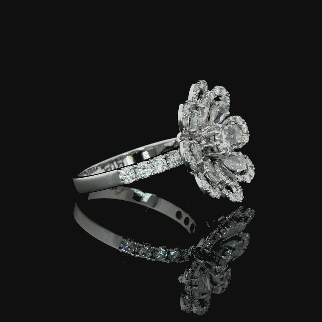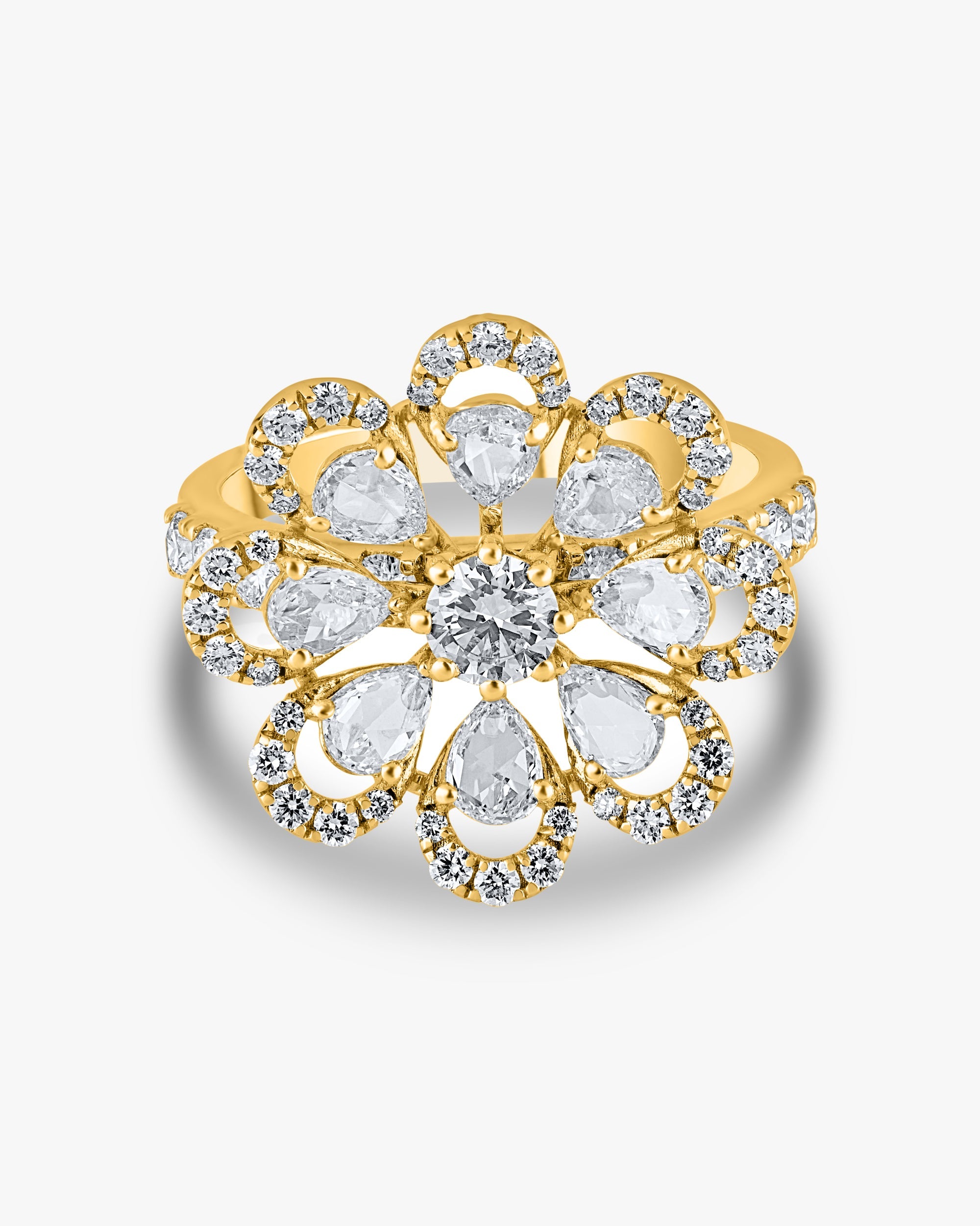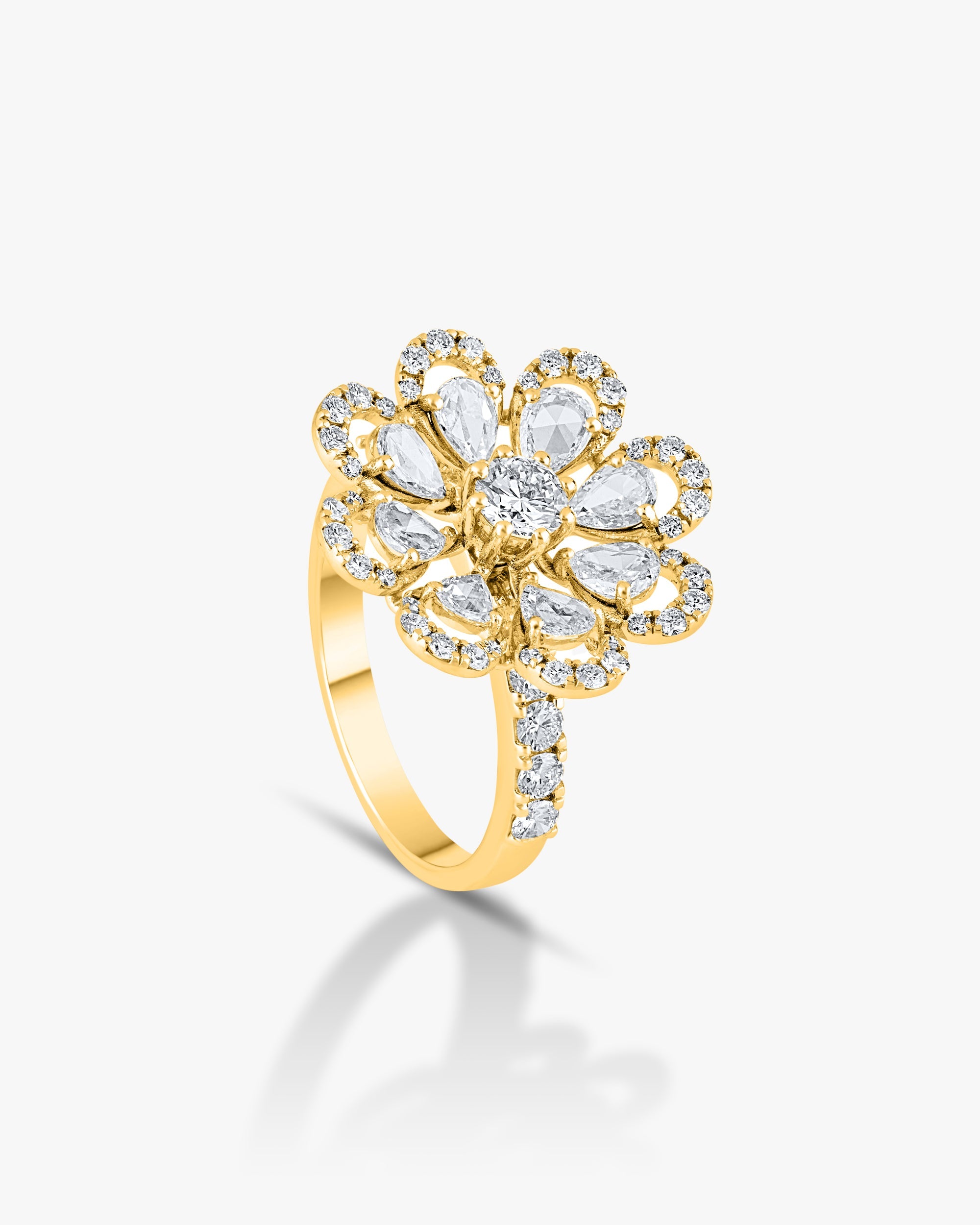 The rose cut beauty ring with the pear-shaped rose cut diamond is truly exquisite! The rose cut diamond's faceting style resembles the petals of a rose, giving it a romantic and vintage appeal. The pear shape of the diamond adds elegance and sophistication to the ring, making it a stunning and unique piece of jewelry. It's a perfect choice for those who appreciate intricate and timeless designs.