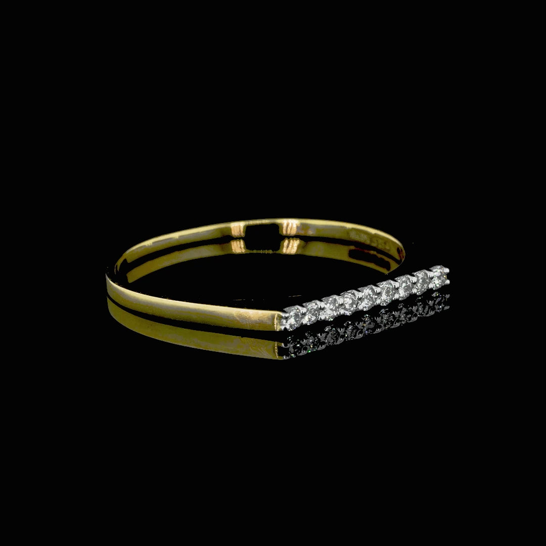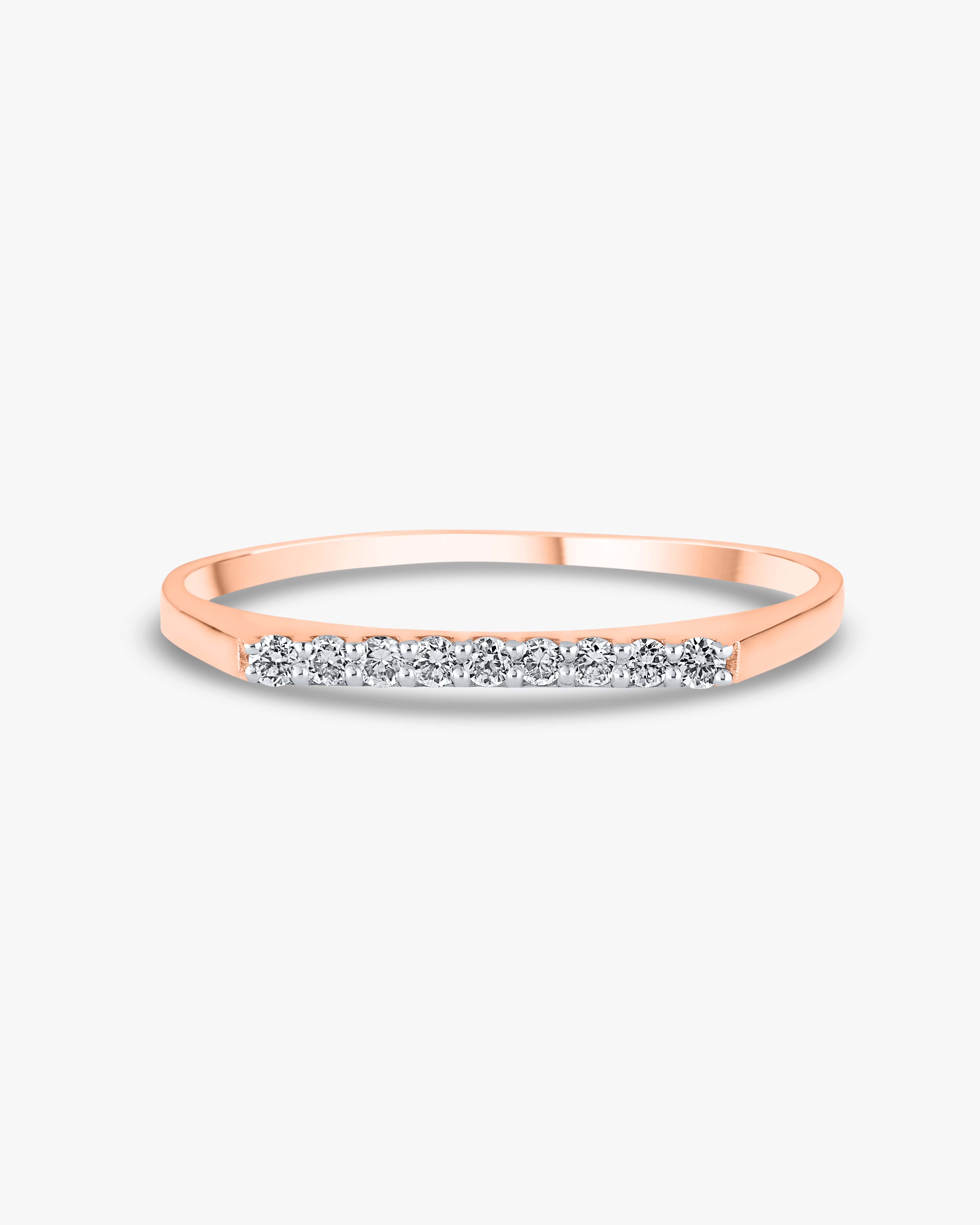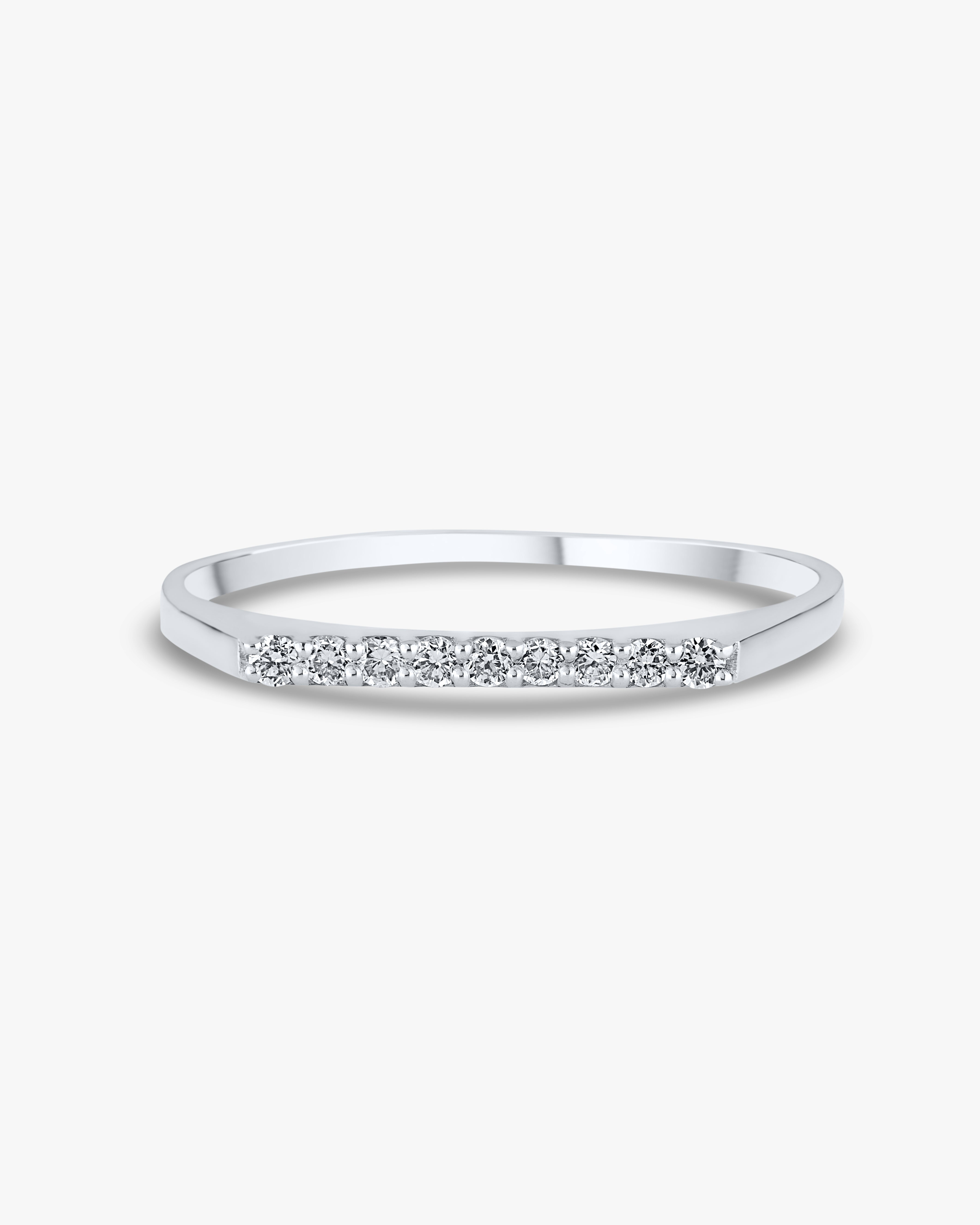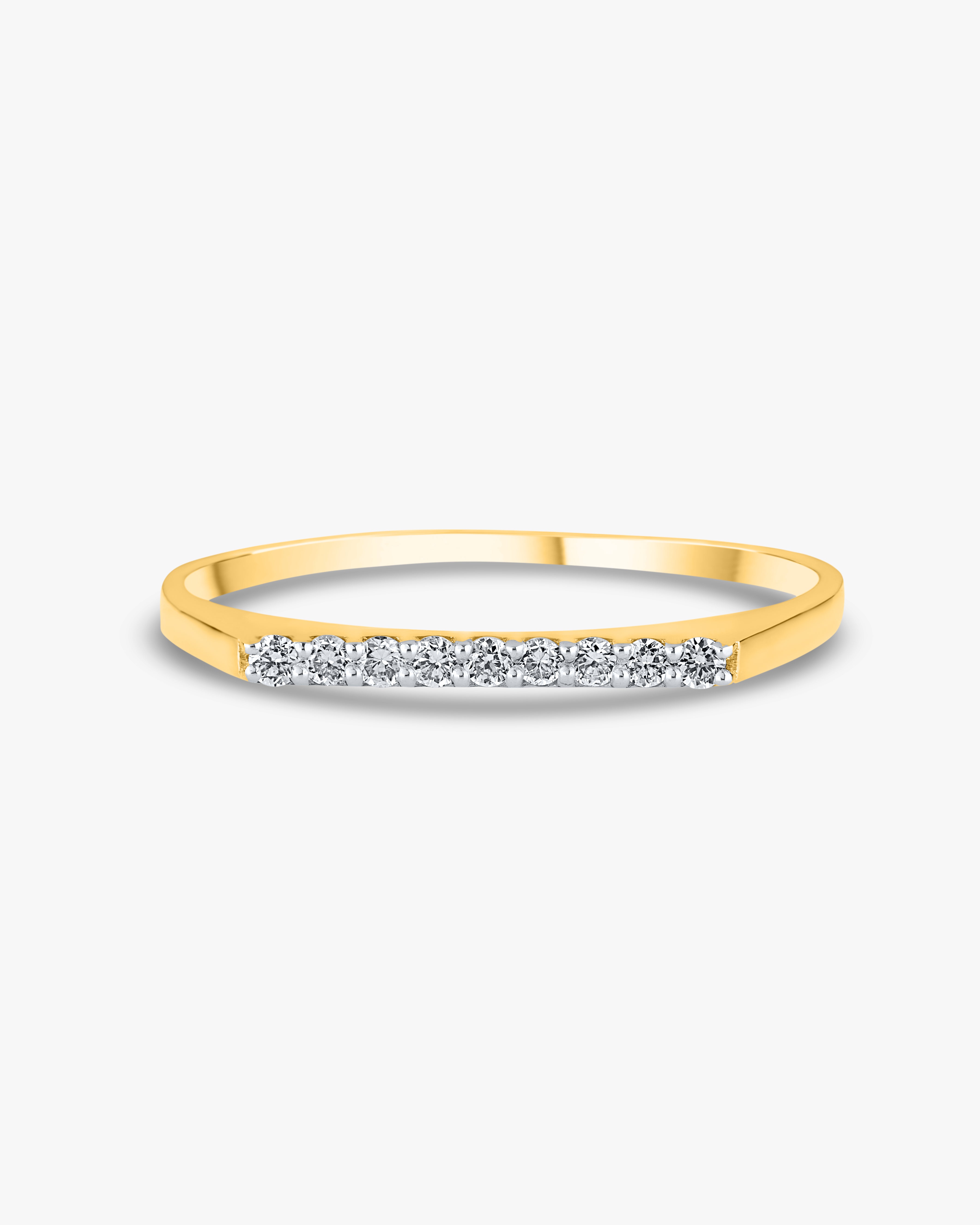 Crafted in 10K gold, this modern ring features a flat top set with a neat row of round diamonds. Its sleek and minimal design makes it perfect for everyday wear or stacking. A timeless piece with a clean, bold edge.