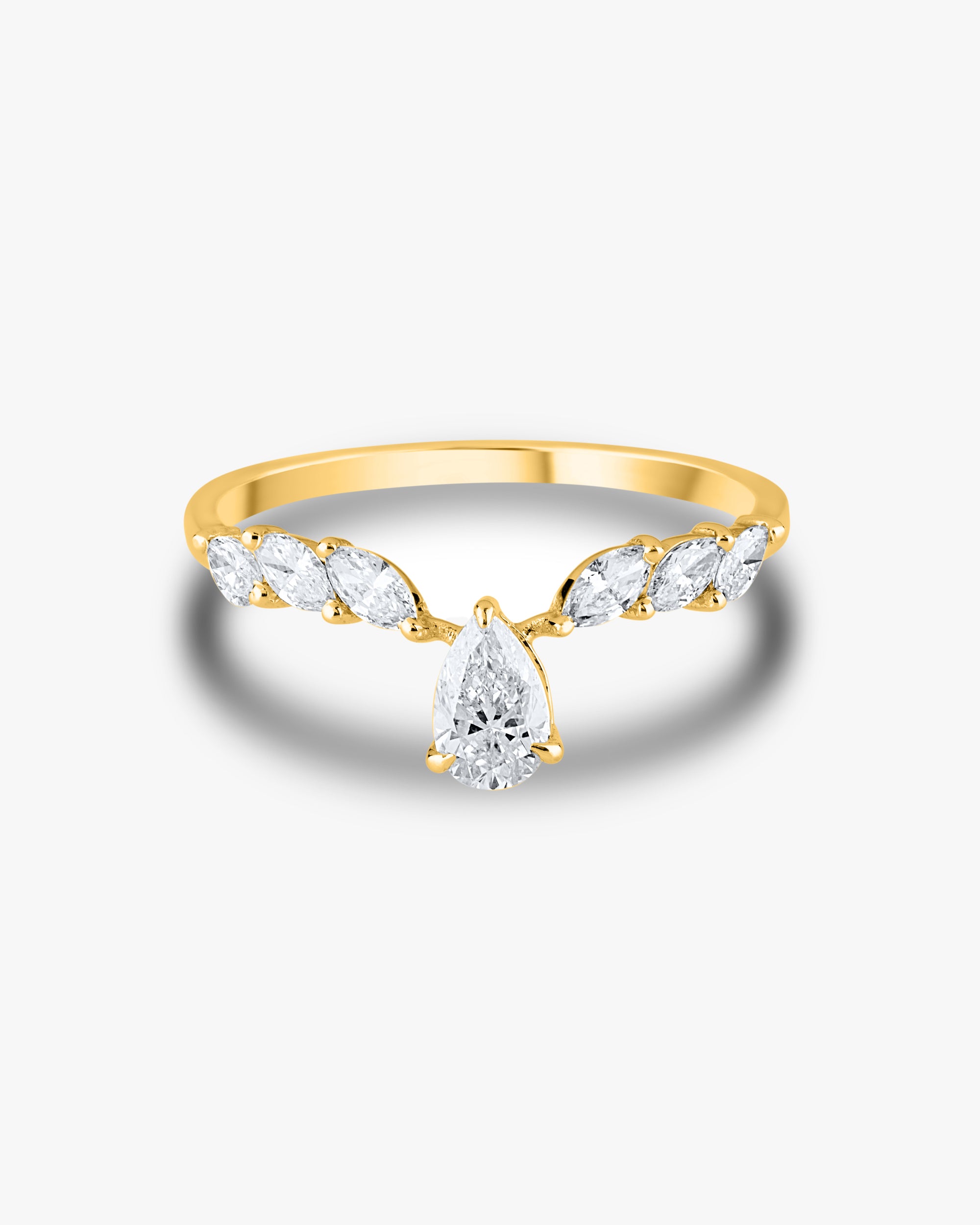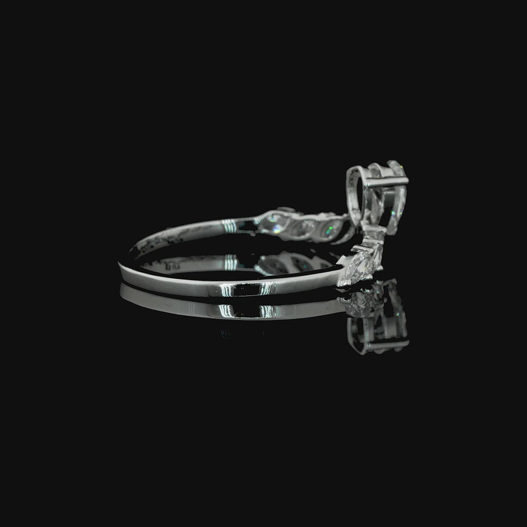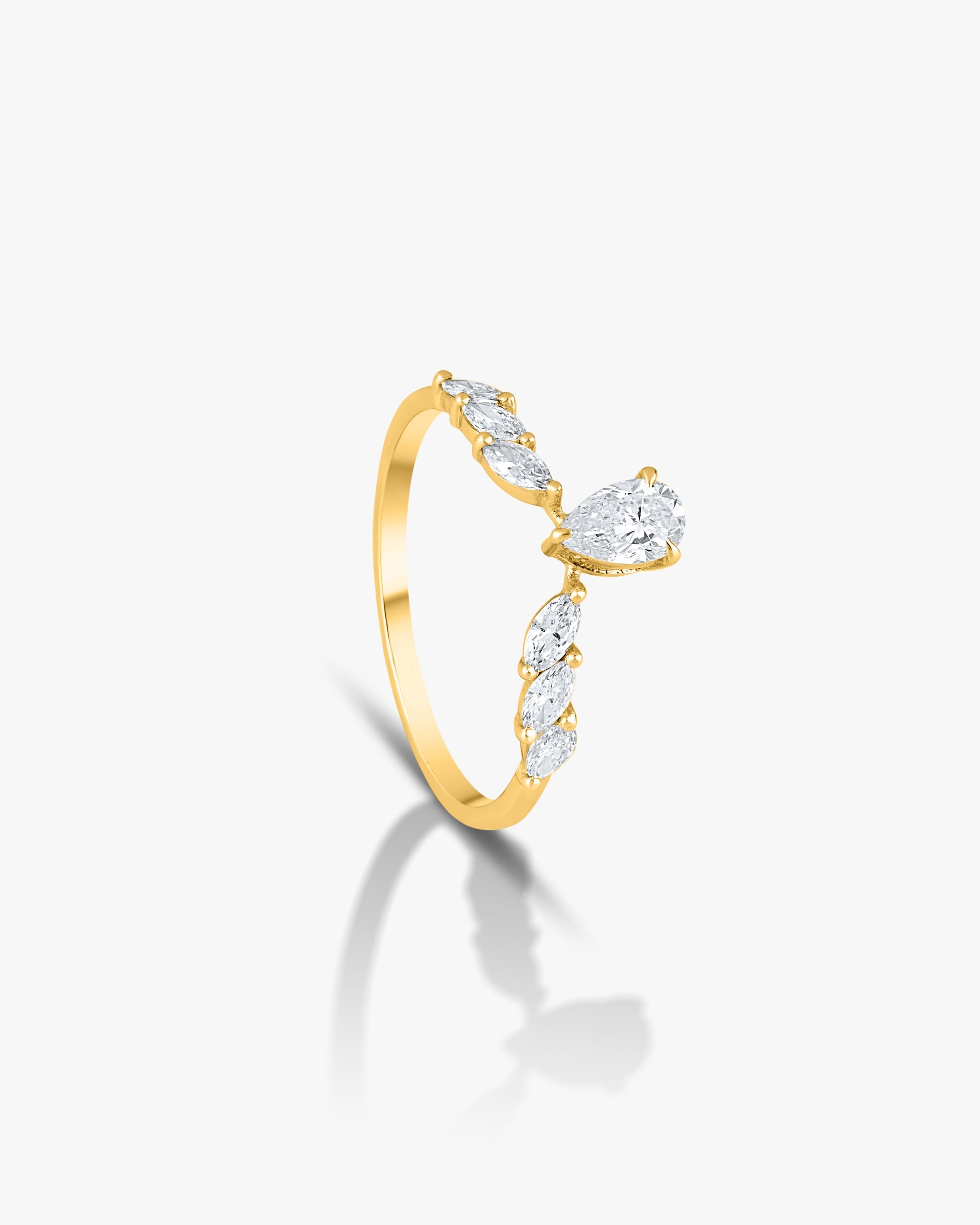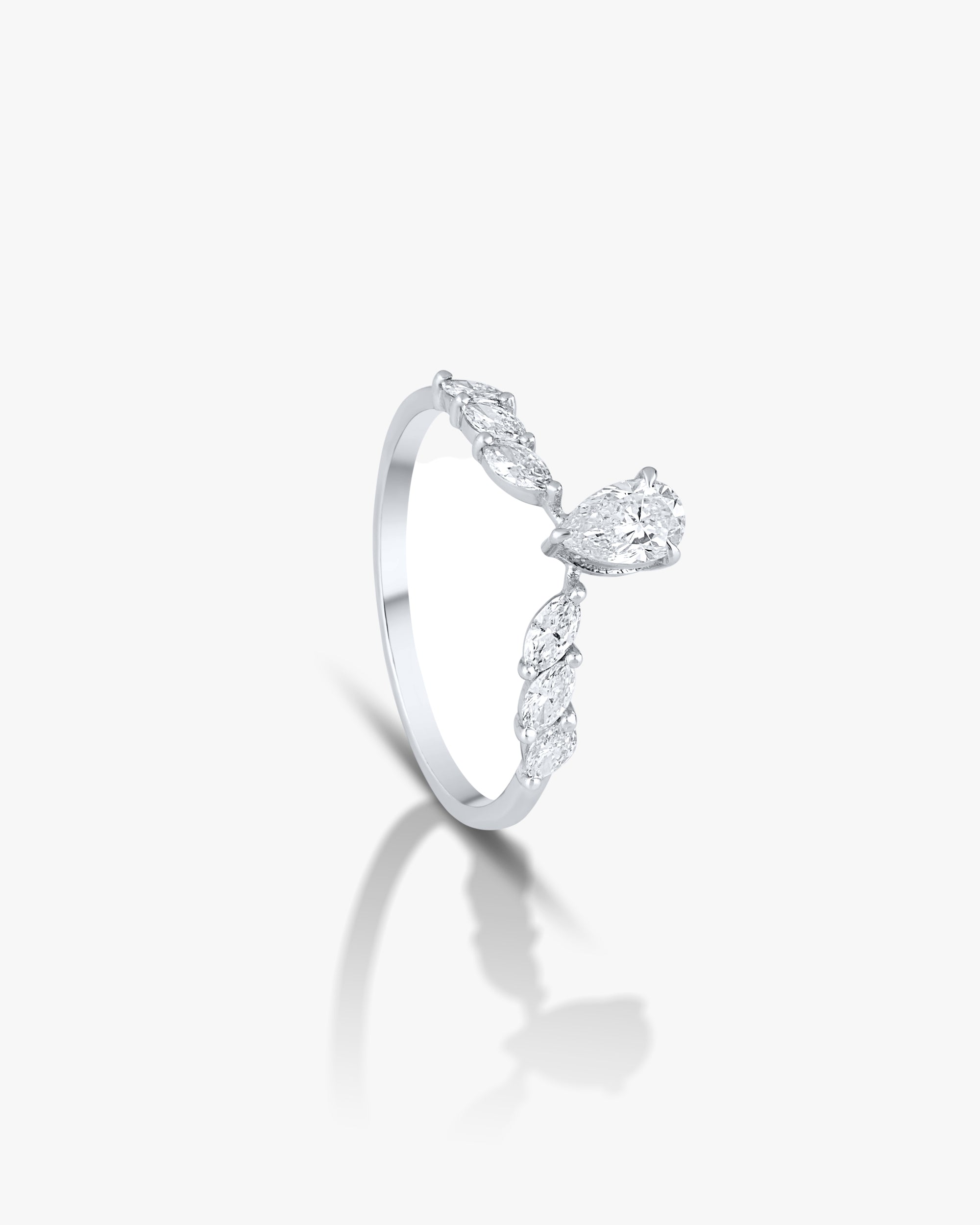 Center Pear Diamond Weight - 0.25 Ct Side Marquise Diamond Weight - 0.07 Ct; of elegance and sophistication to the ring, creating a unique and eye-catching look. This ring is a perfect choice for someone who appreciates intricate designs and wants to make a statement with their jewelry. It's a beautiful blend of artistry and luxury, perfect for any special occasion.