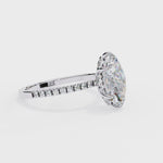 This ring features a striking marquise-cut diamond set in yellow gold, offering a bold and elongated shape that flatters the finger. The paveset diamonds on the band enhance the overall brilliance without detracting from the unique center stone