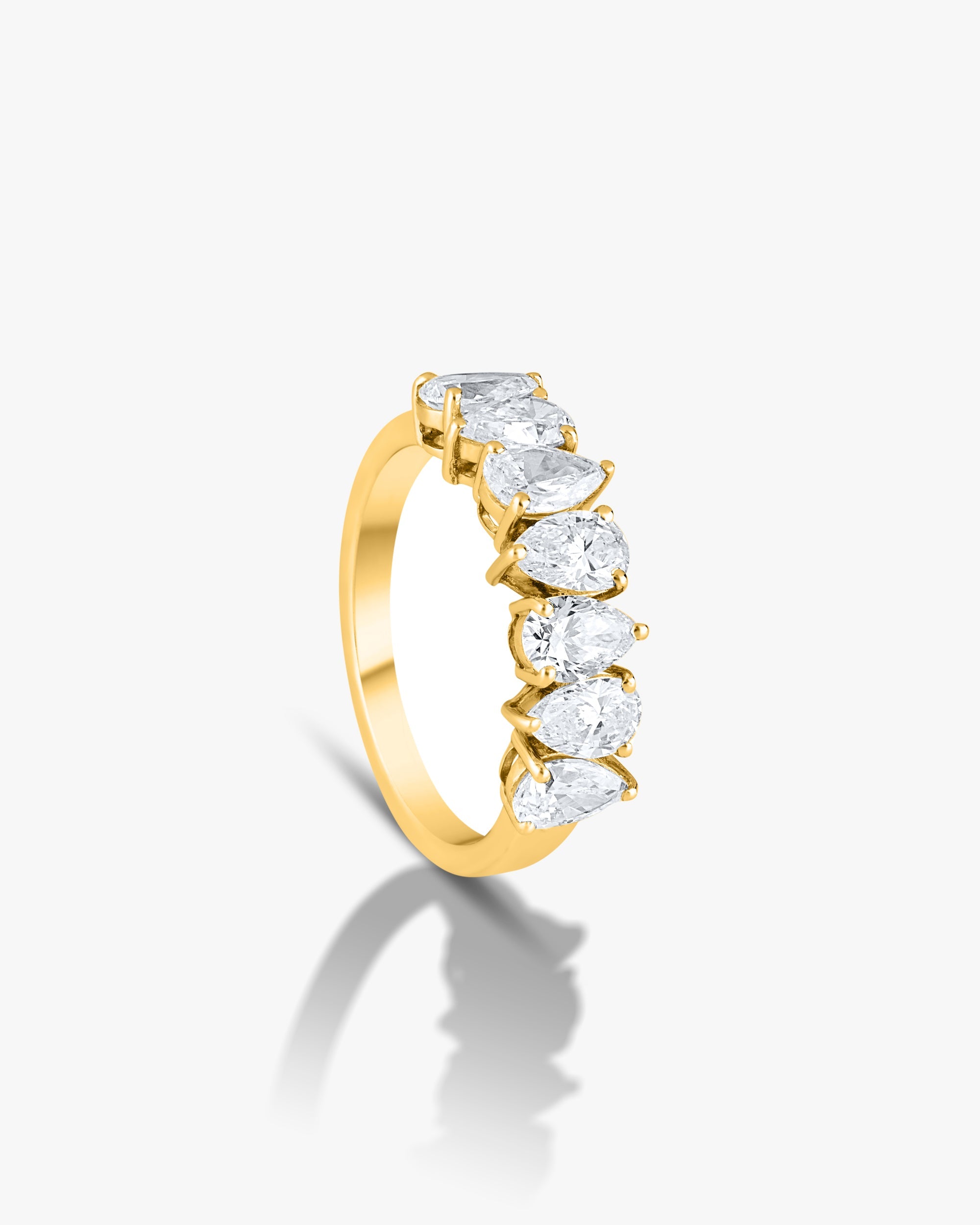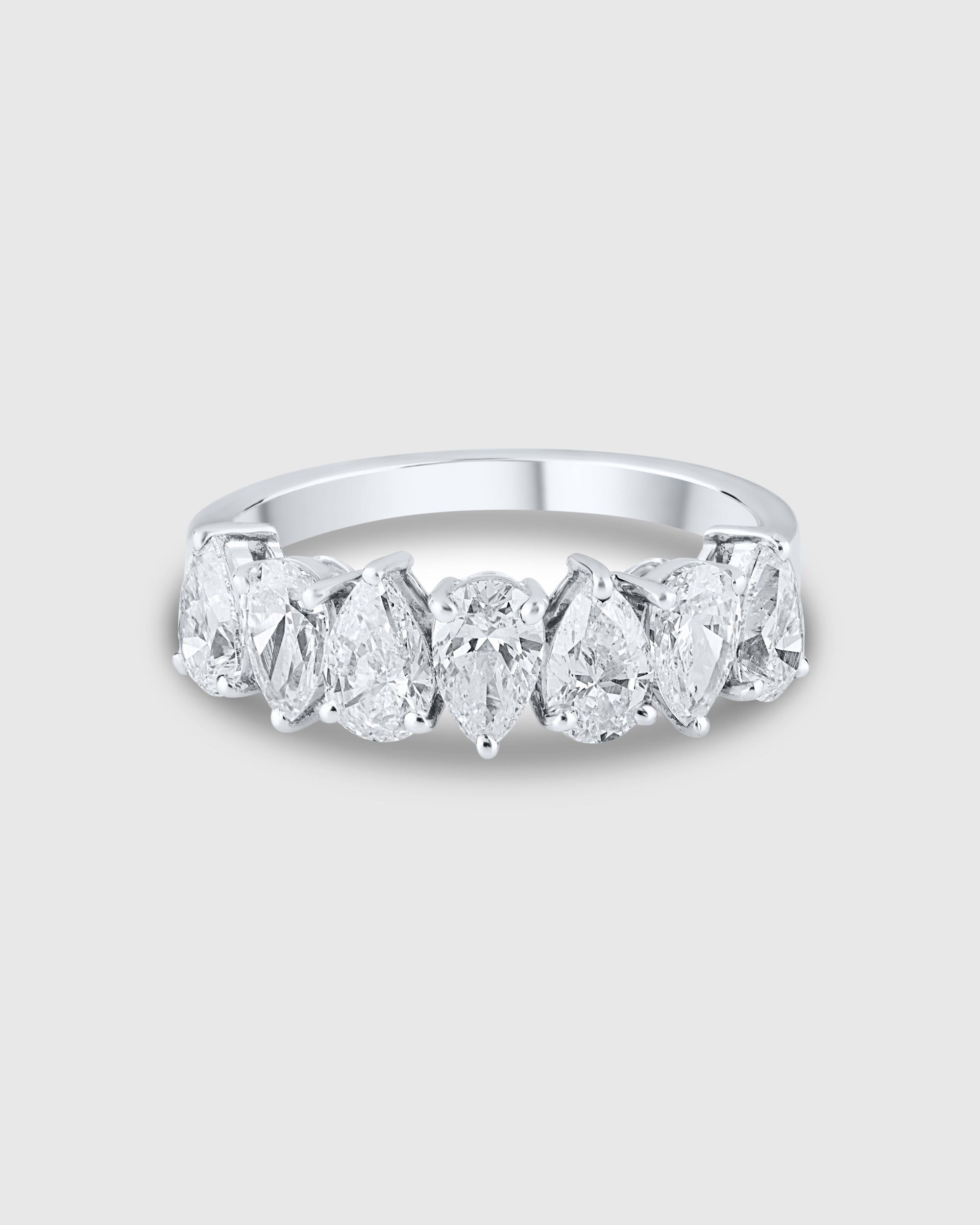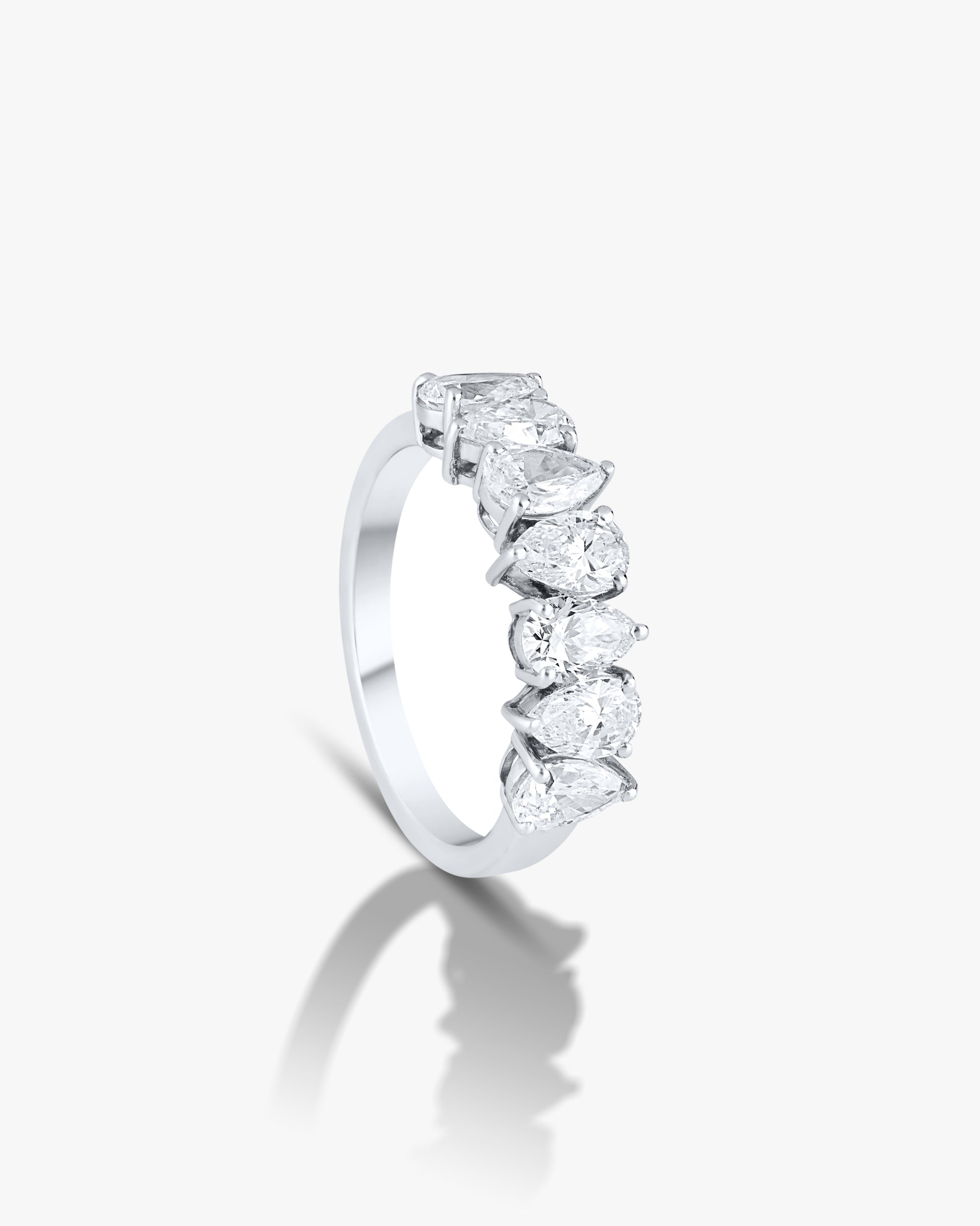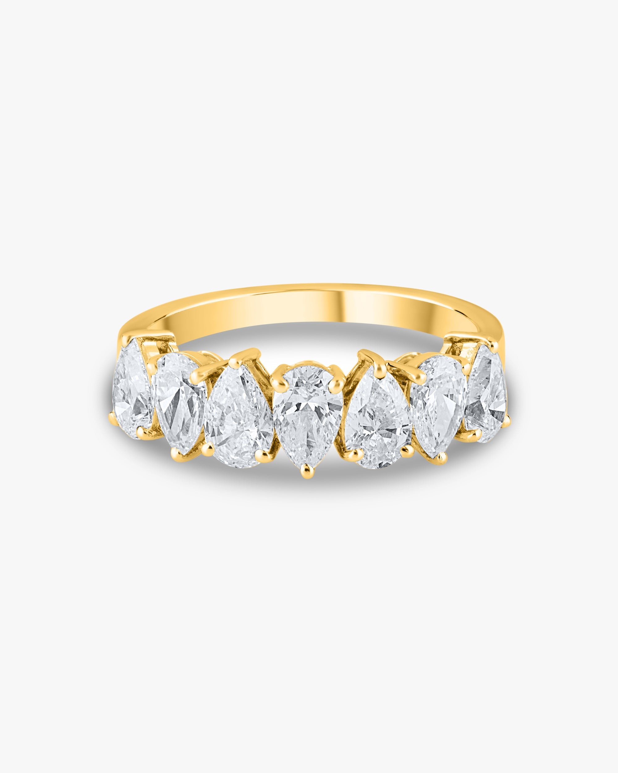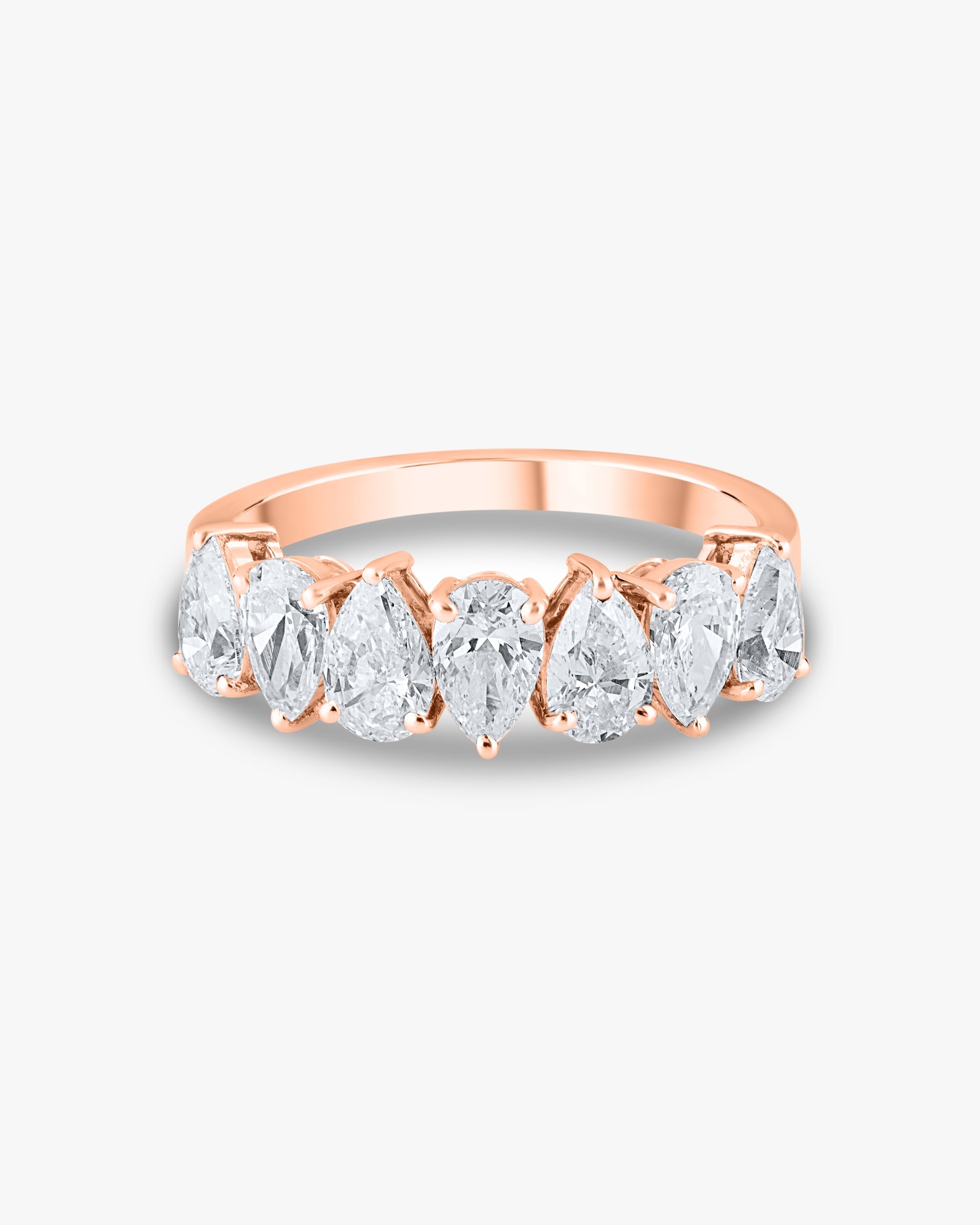 Total Diamond - 7 psc Single Diamond Weight - 0.25 Ct The tear drop wedding band with pear-shaped diamonds is such a unique and elegant choice! The pear-shaped diamonds add a touch of sophistication and charm to the band. It's a beautiful and distinctive option for anyone looking for a special piece of jewelry. πŸ’πŸπŸ’Žβœ¨