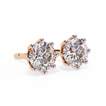 This features a timeless and elegant pair of solitaire stud earrings. Each earring showcases a single round brilliant-cut diamond, held securely in a classic six-prong setting that allows maximum light to pass through the stone for enhanced brilliance.