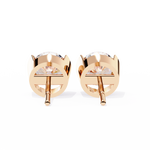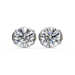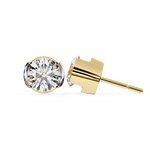 These earrings are solitaire round-cut diamond studs set in a modern half-bezel yellow gold setting. The half-bezel design secures the diamond with metal on either side, allowing more light to enter the stone and enhancing its brilliance. This setting offers a sleek, contemporary look while maintaining the timeless appeal of classic diamond studs.