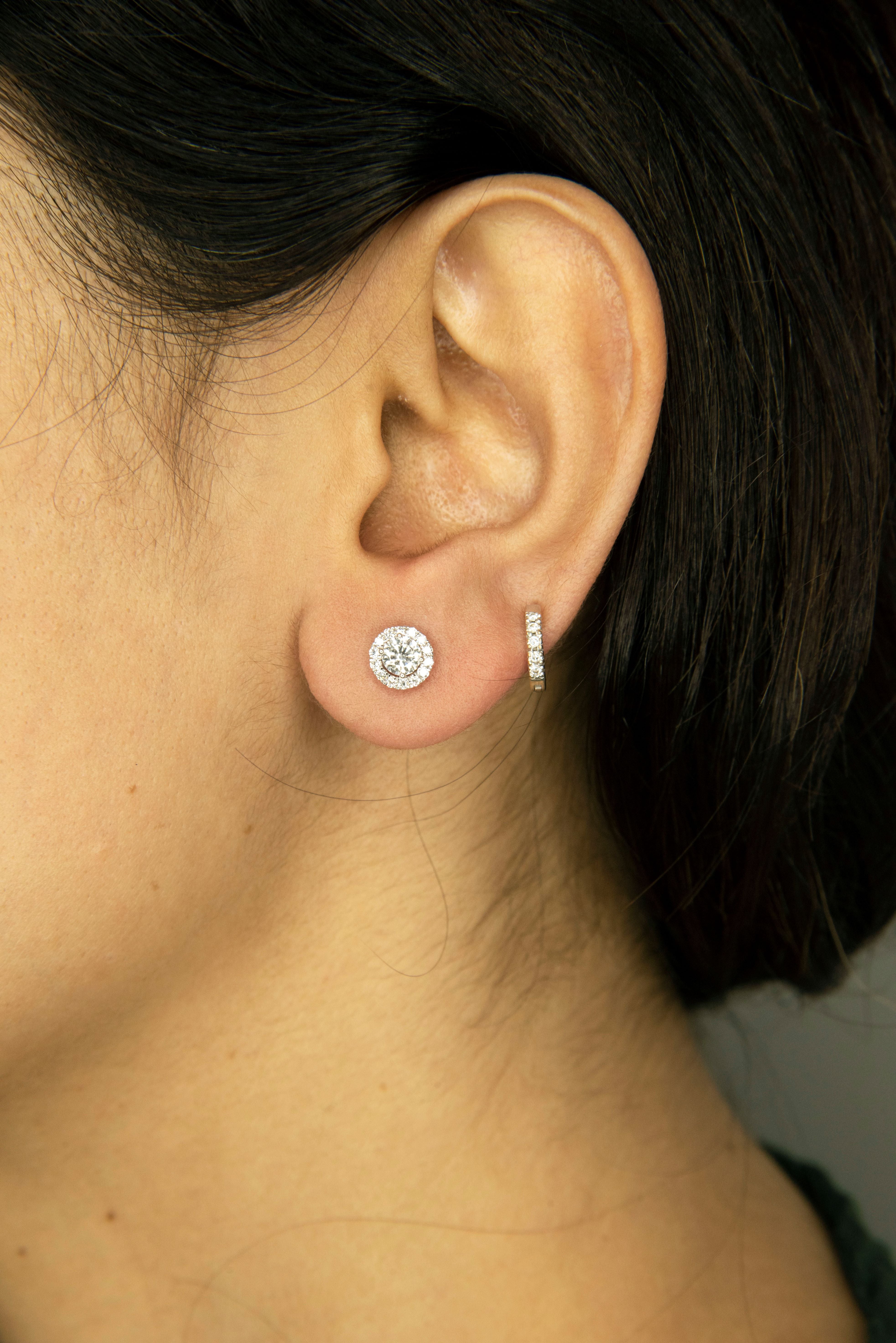 Those round diamond halo studs are absolutely gorgeous! The halo design adds a touch of sparkle and elegance, making them a perfect choice for both everyday wear and special occasions. 💎✨ 0.25ct x 2 Round diamond surrounded with .25ct of small diamonds in the halo