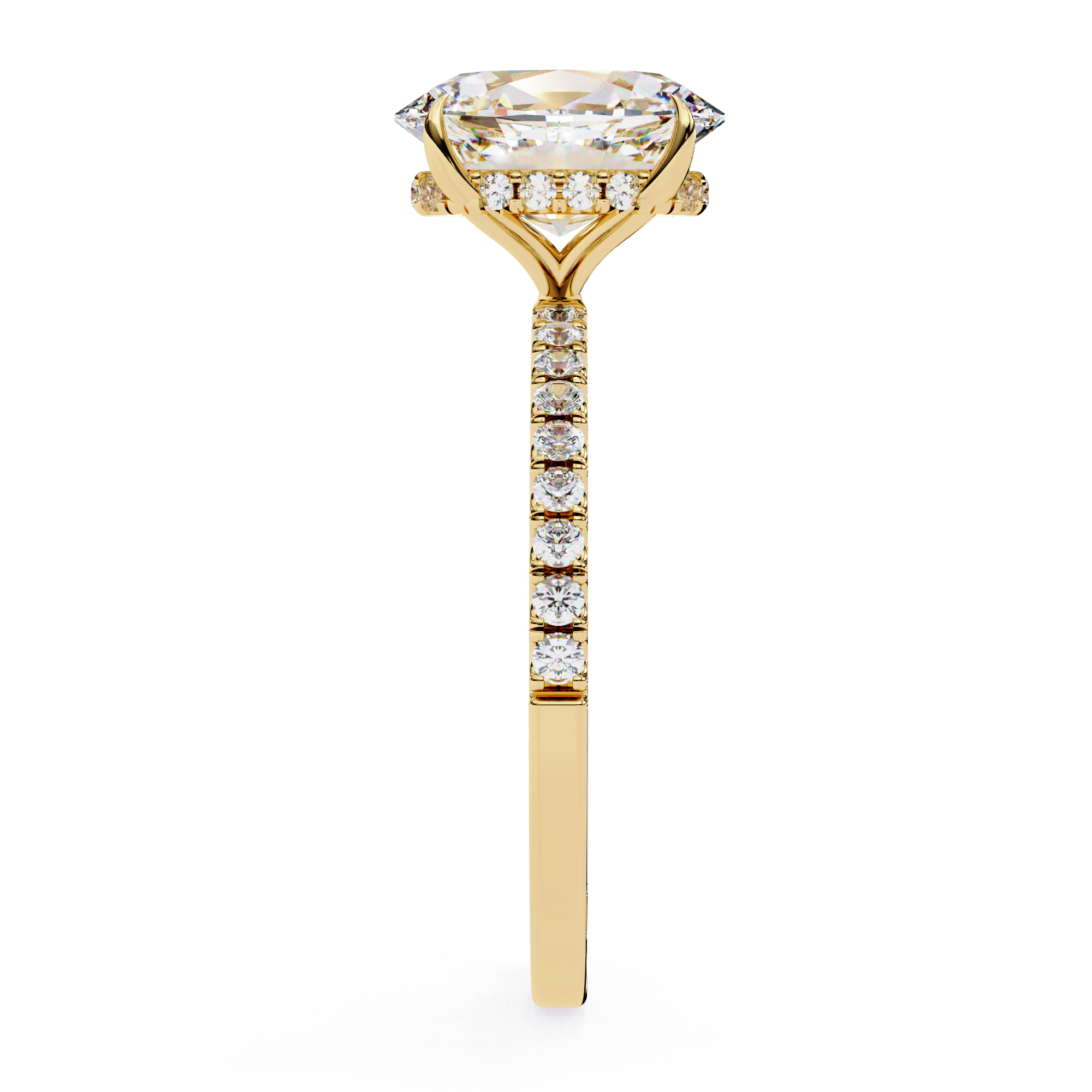 Hidden Halo Oval with Side Diamond Ring